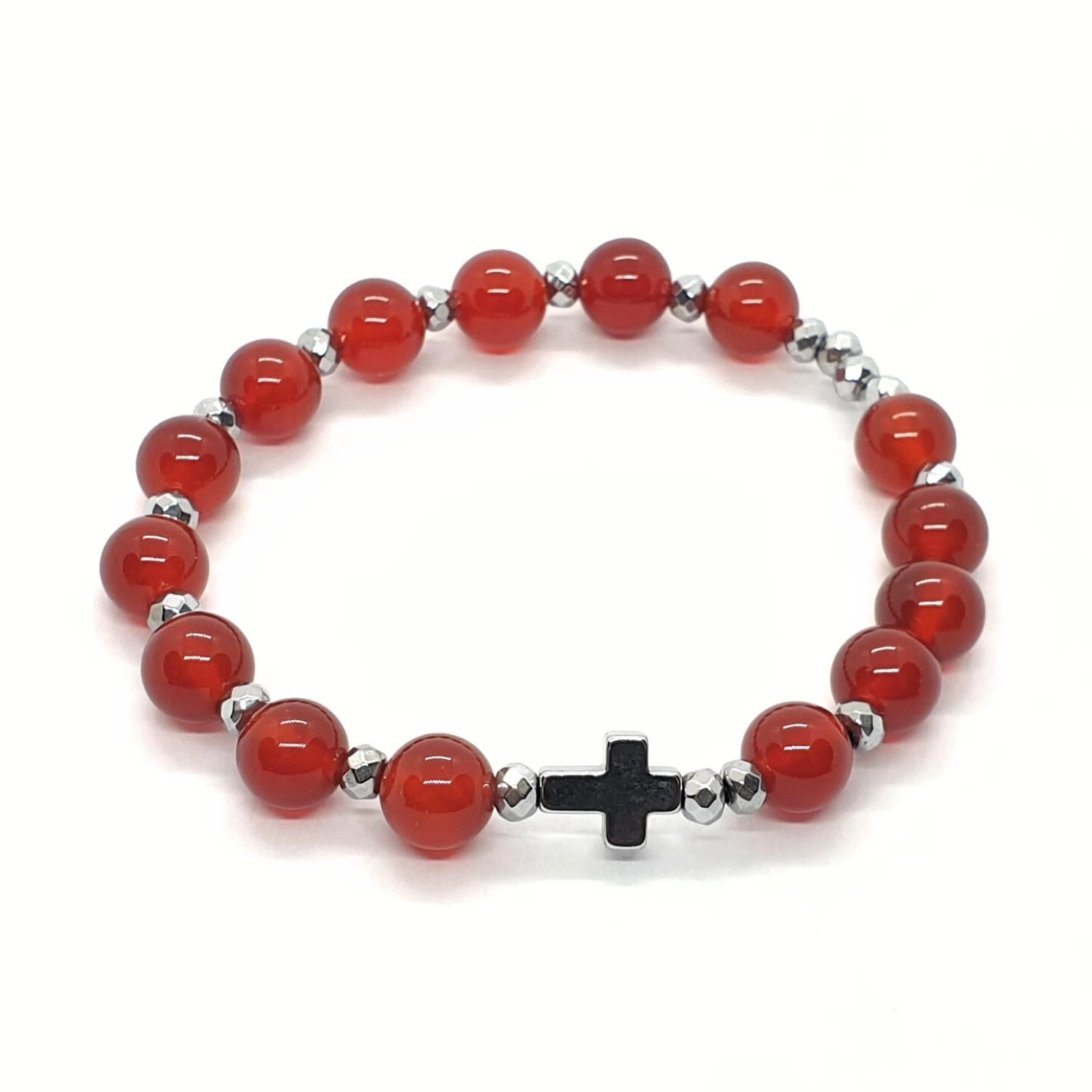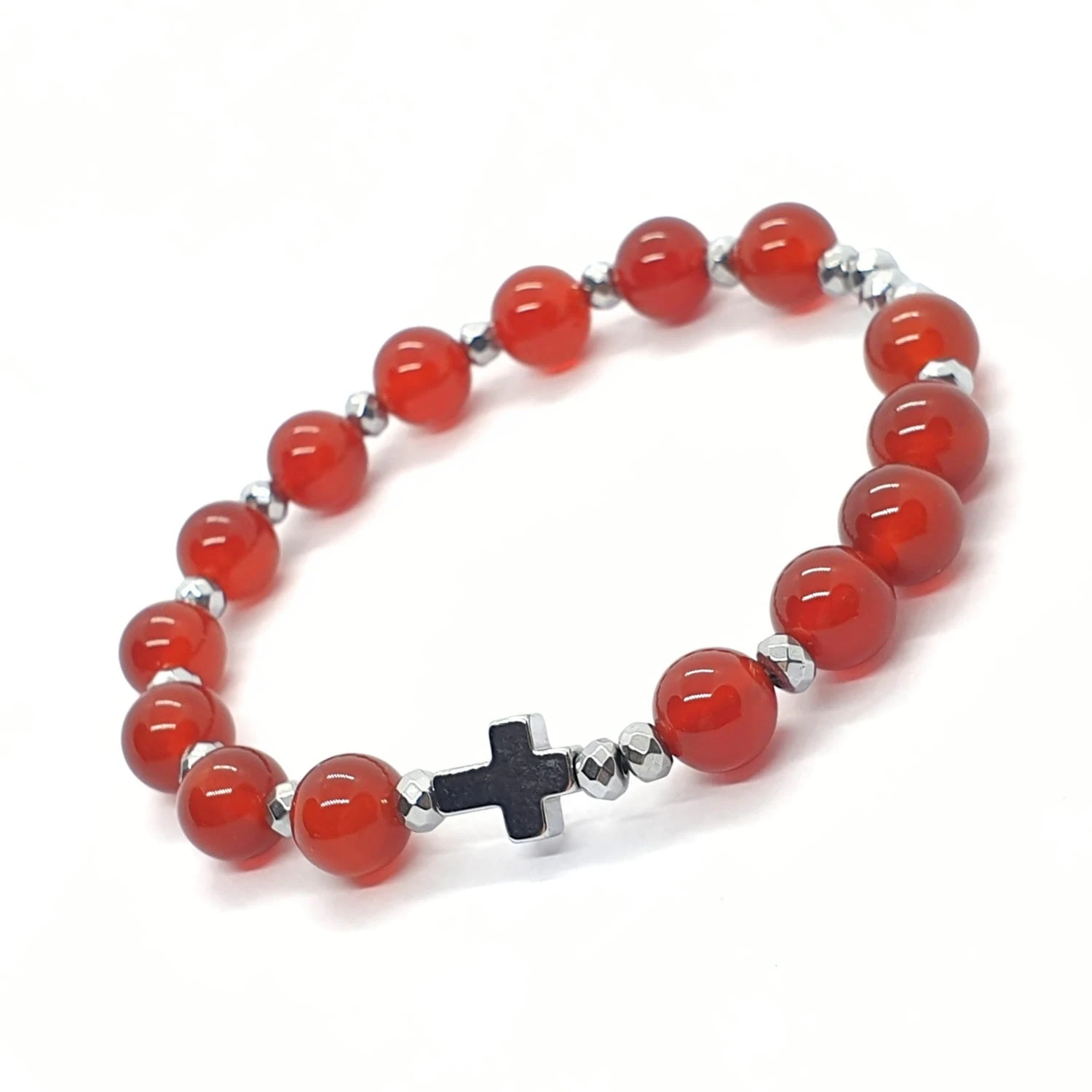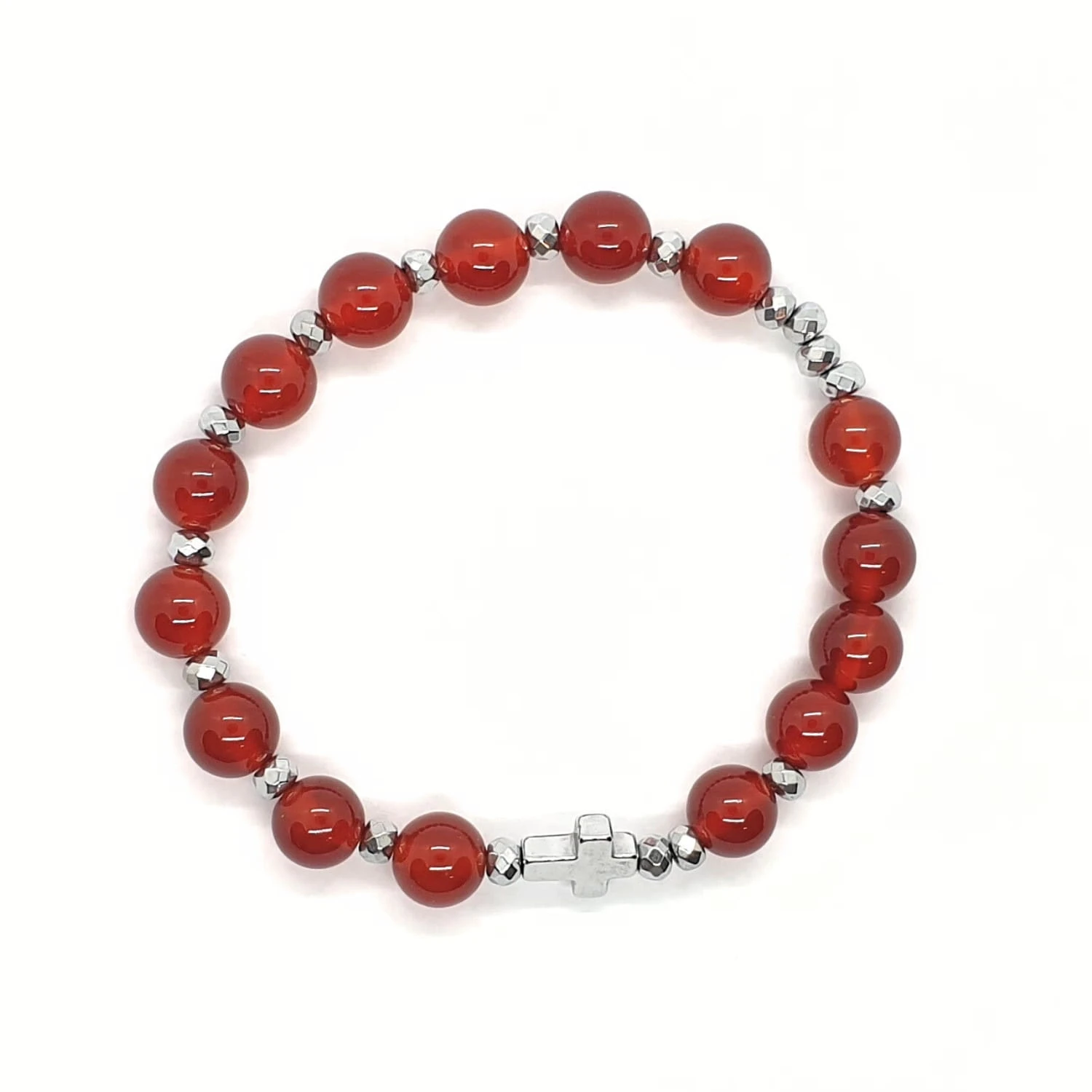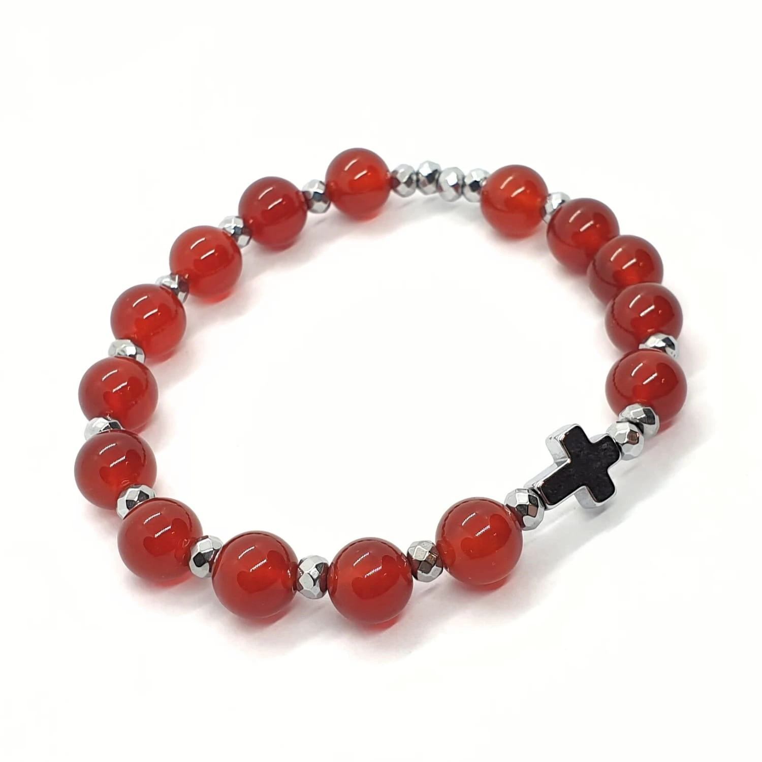 Różaniec na rękę "dziesiątka" wykonany z agatu karneolowego