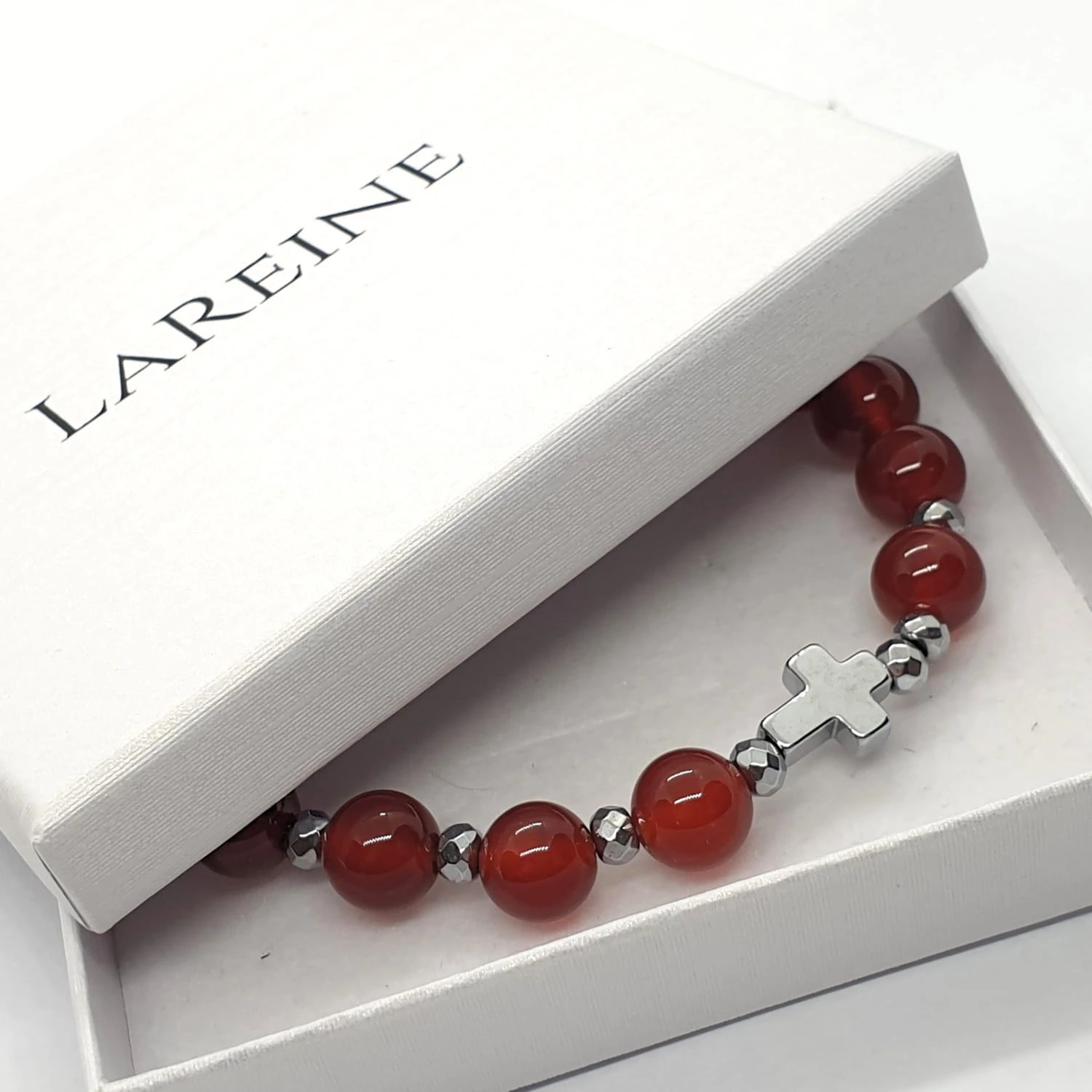 Różaniec na rękę agat karneolowy - bransoletka damska
