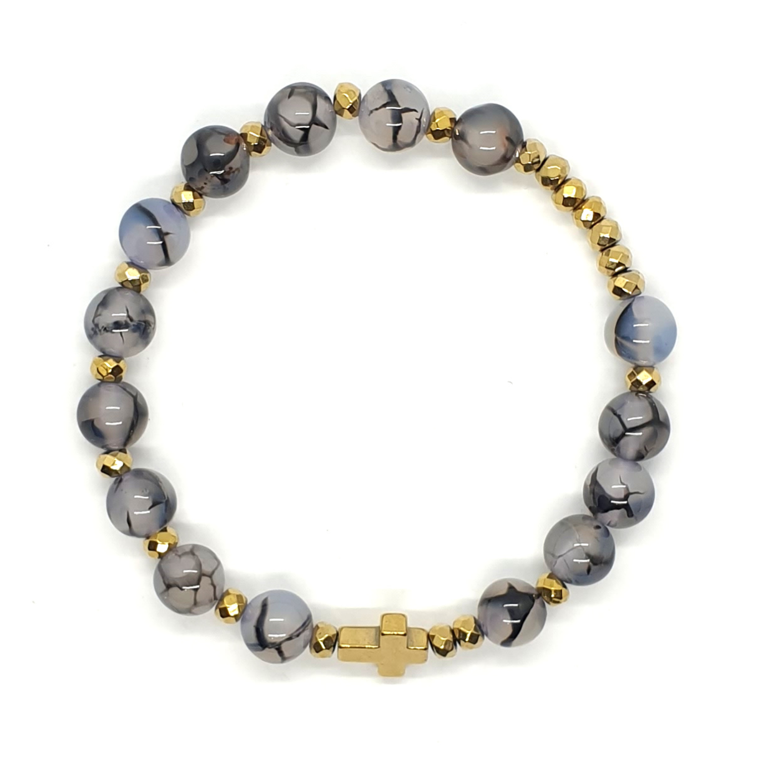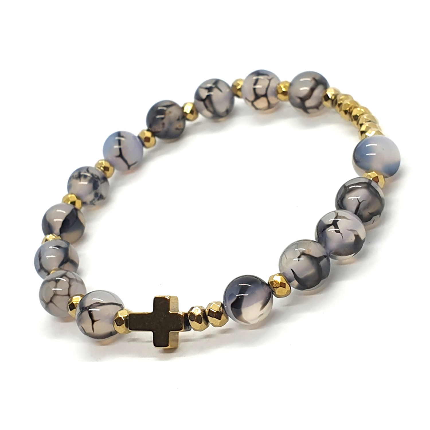 Różaniec na rękę "dziesiątka" wykonany z kamieni - agatu szarego smoczego