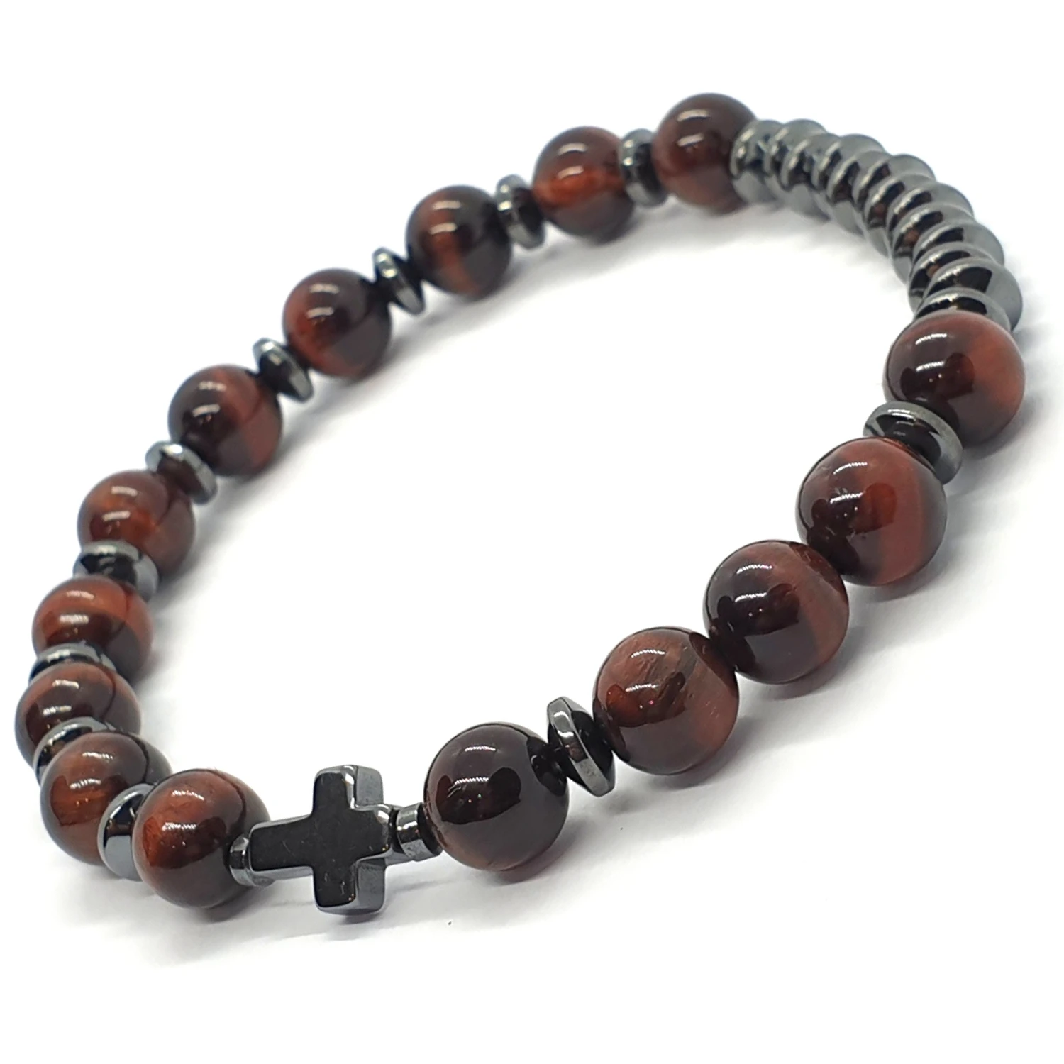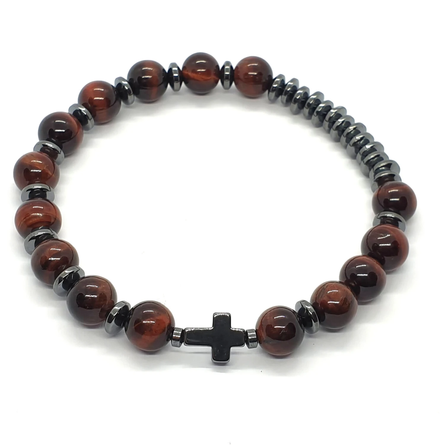 Różaniec męski na rękę "dziesiątka" wykonany z kamieni - bawolego oka