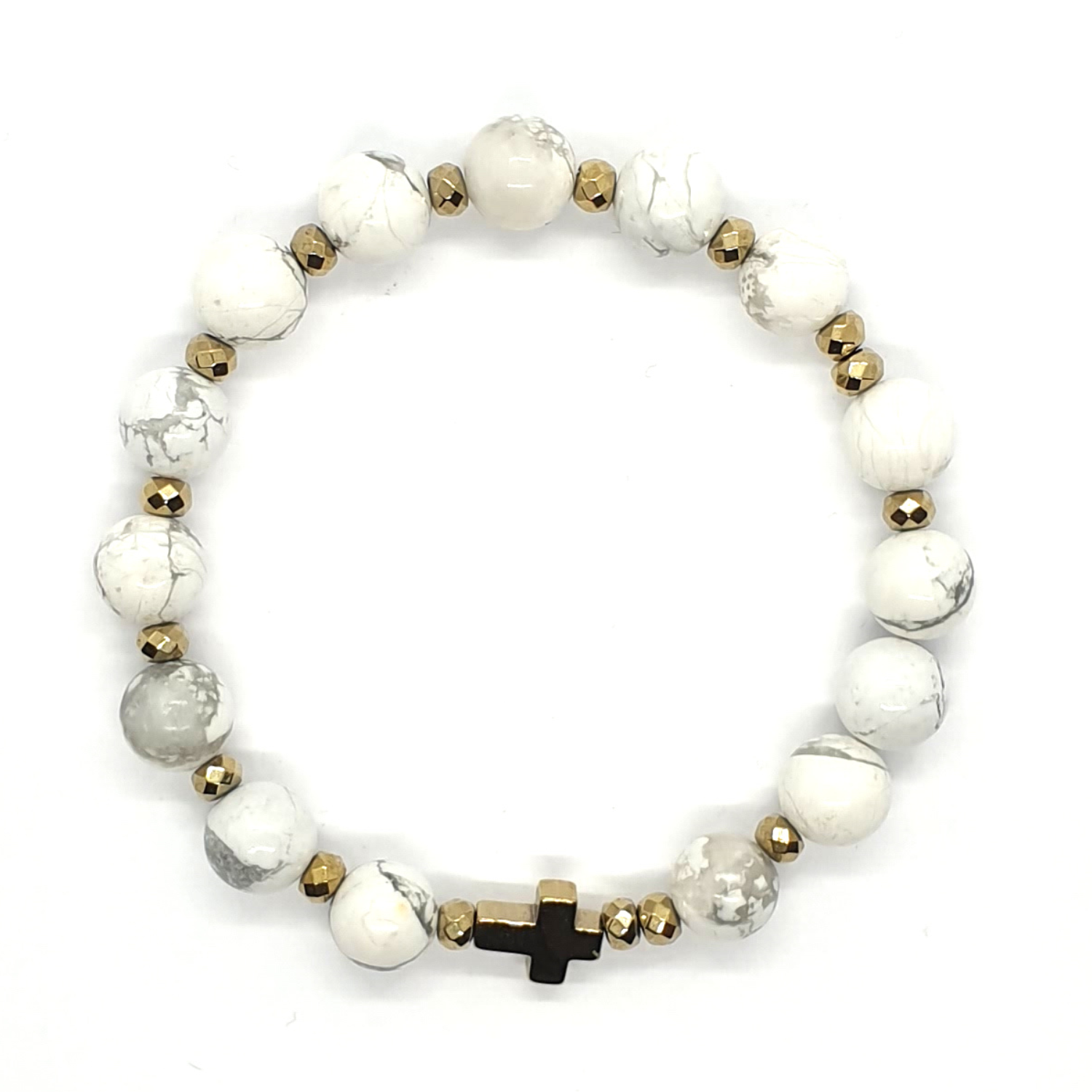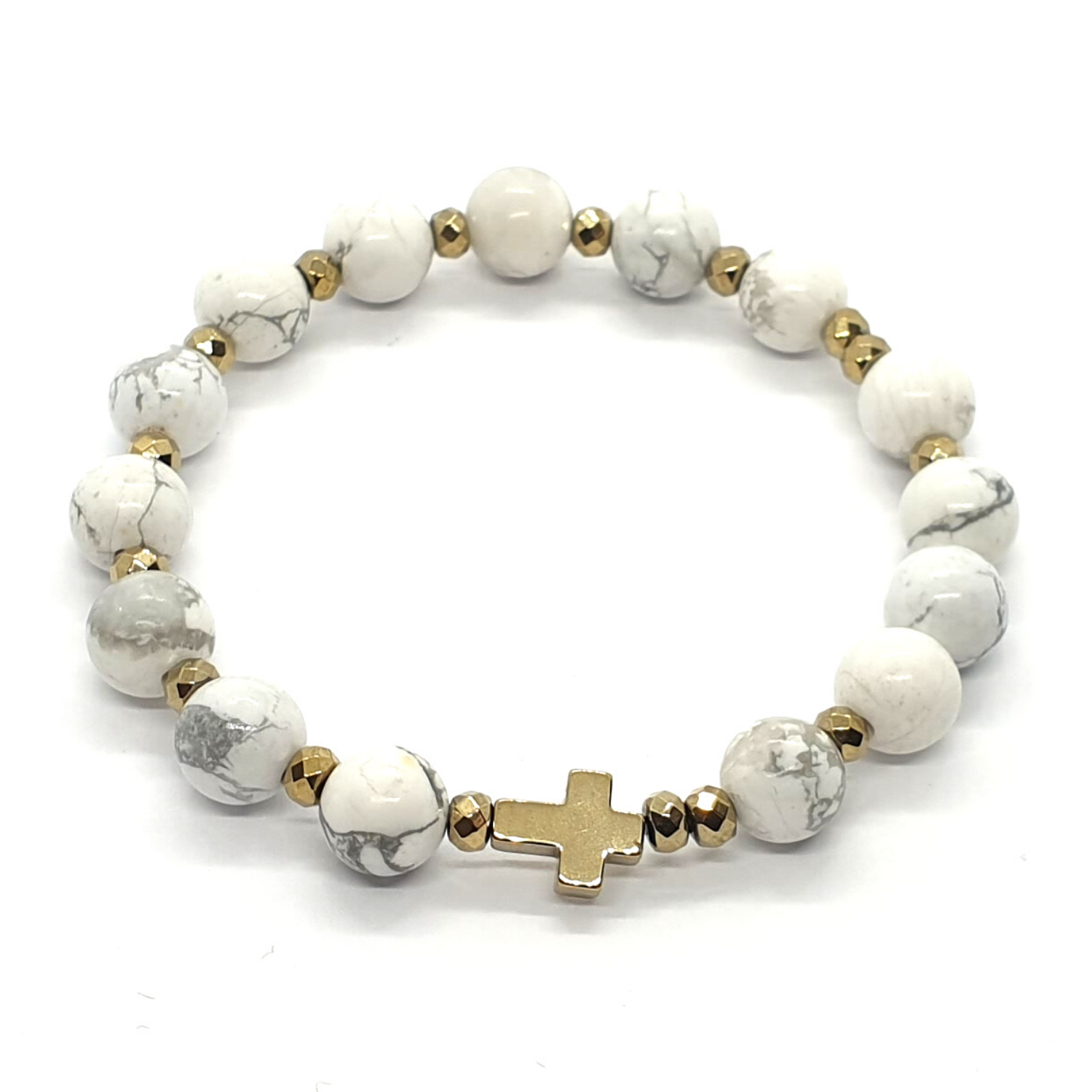 Różaniec na rękę "dziesiątka" wykonany z kamieni naturalnych - howlitu białego
