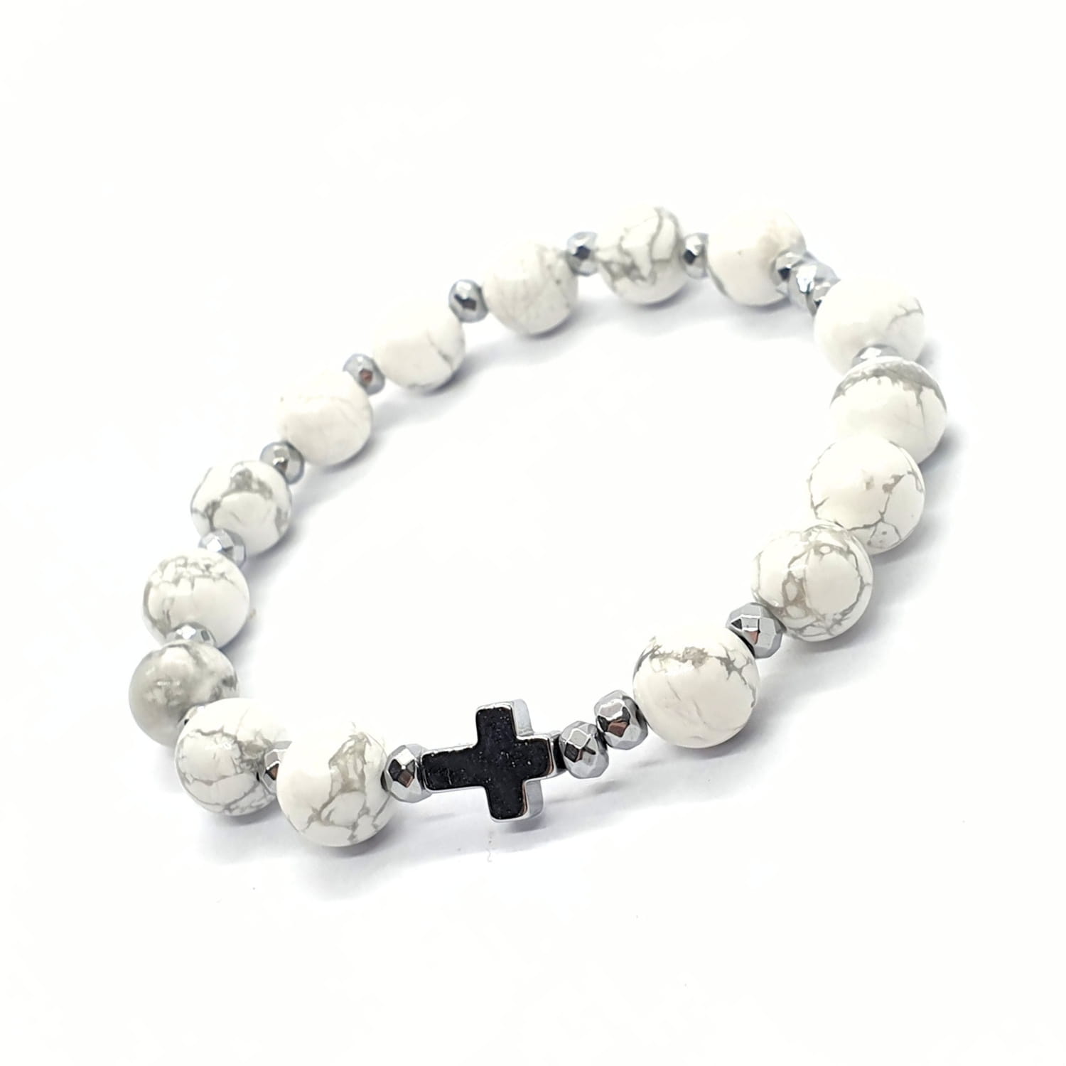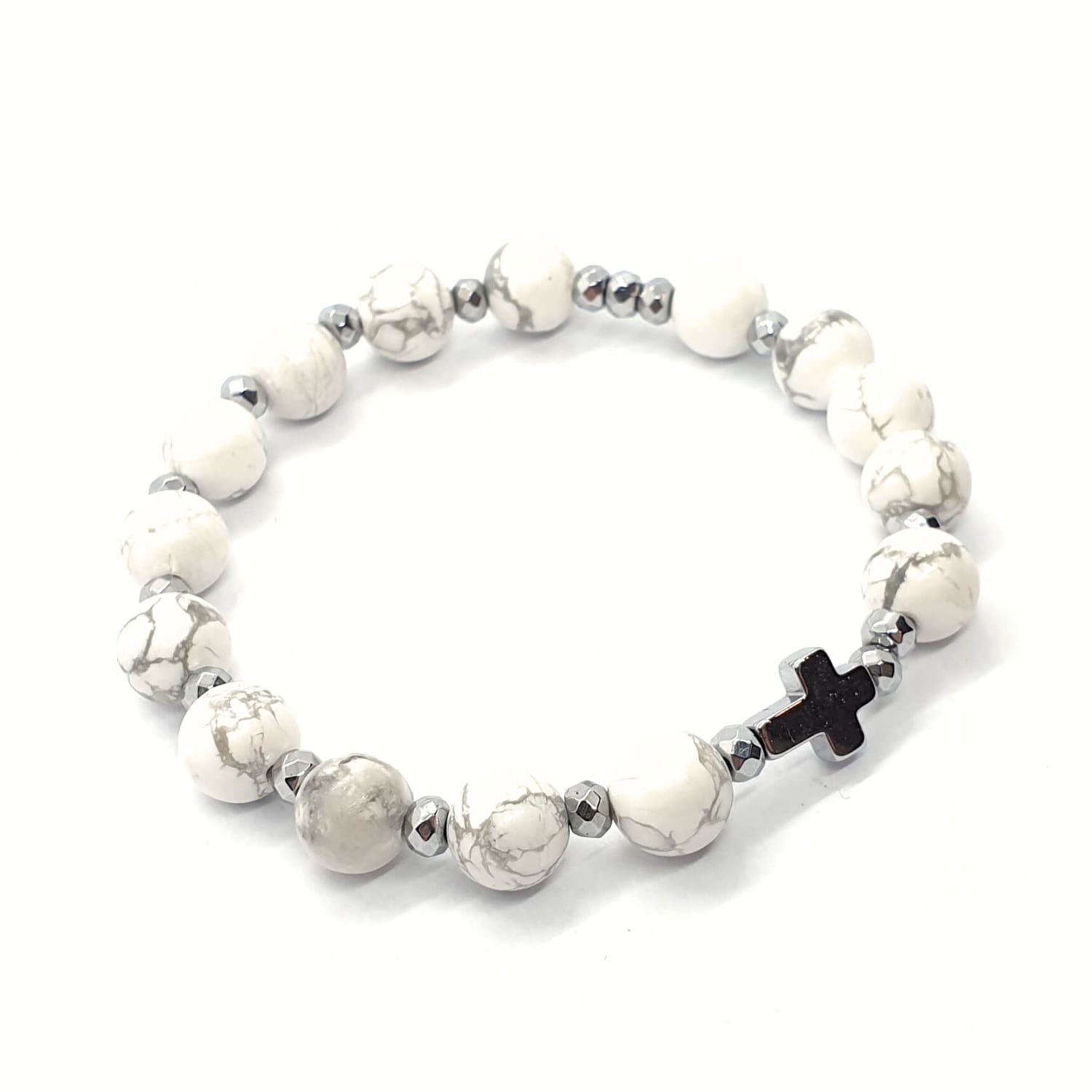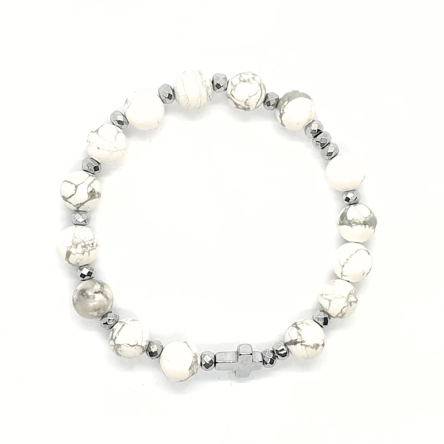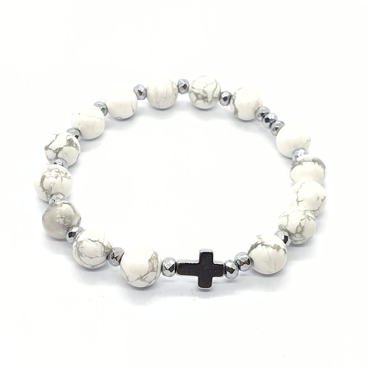 Różaniec na rękę "dziesiątka" wykonany z kamieni naturalnych - howlitu białego