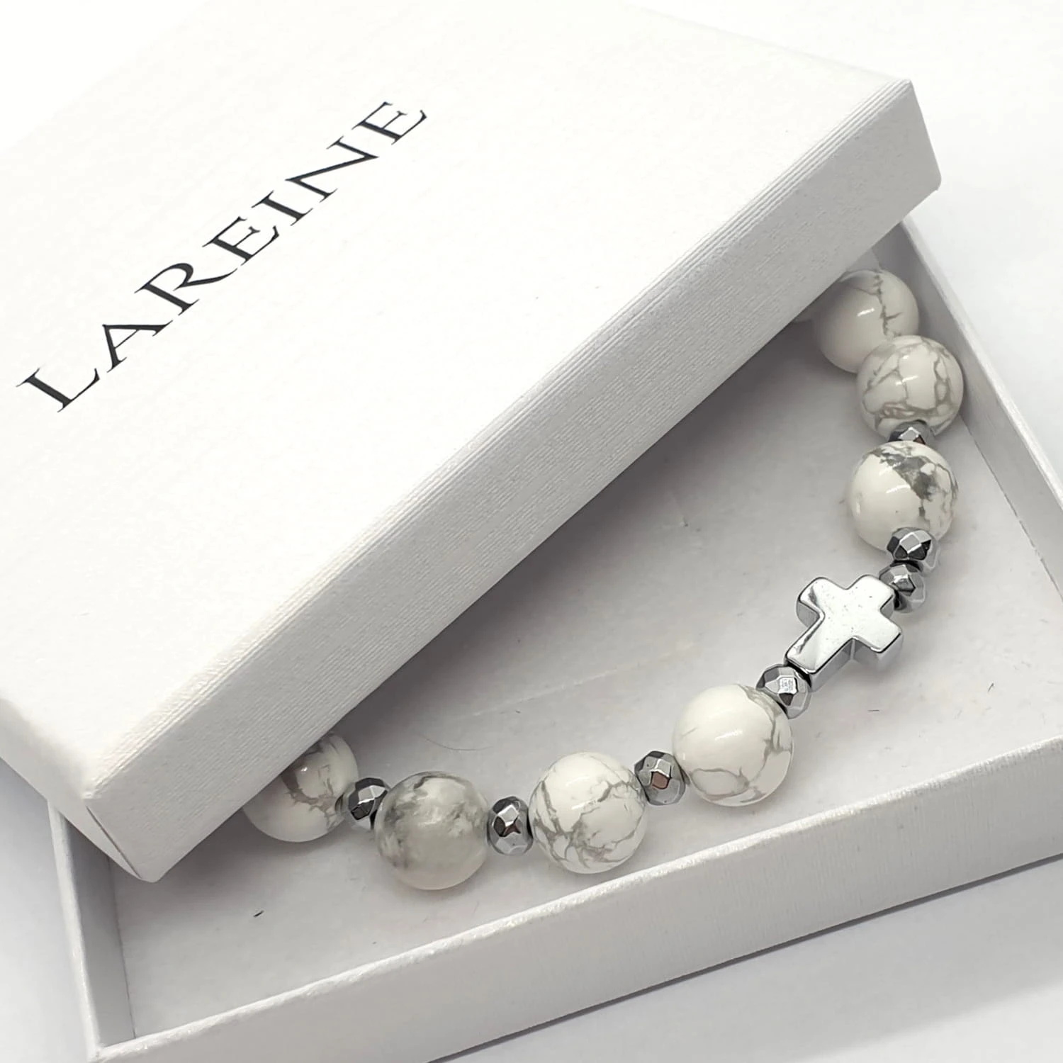 Różaniec na rękę howlit biały - bransoletka damska
