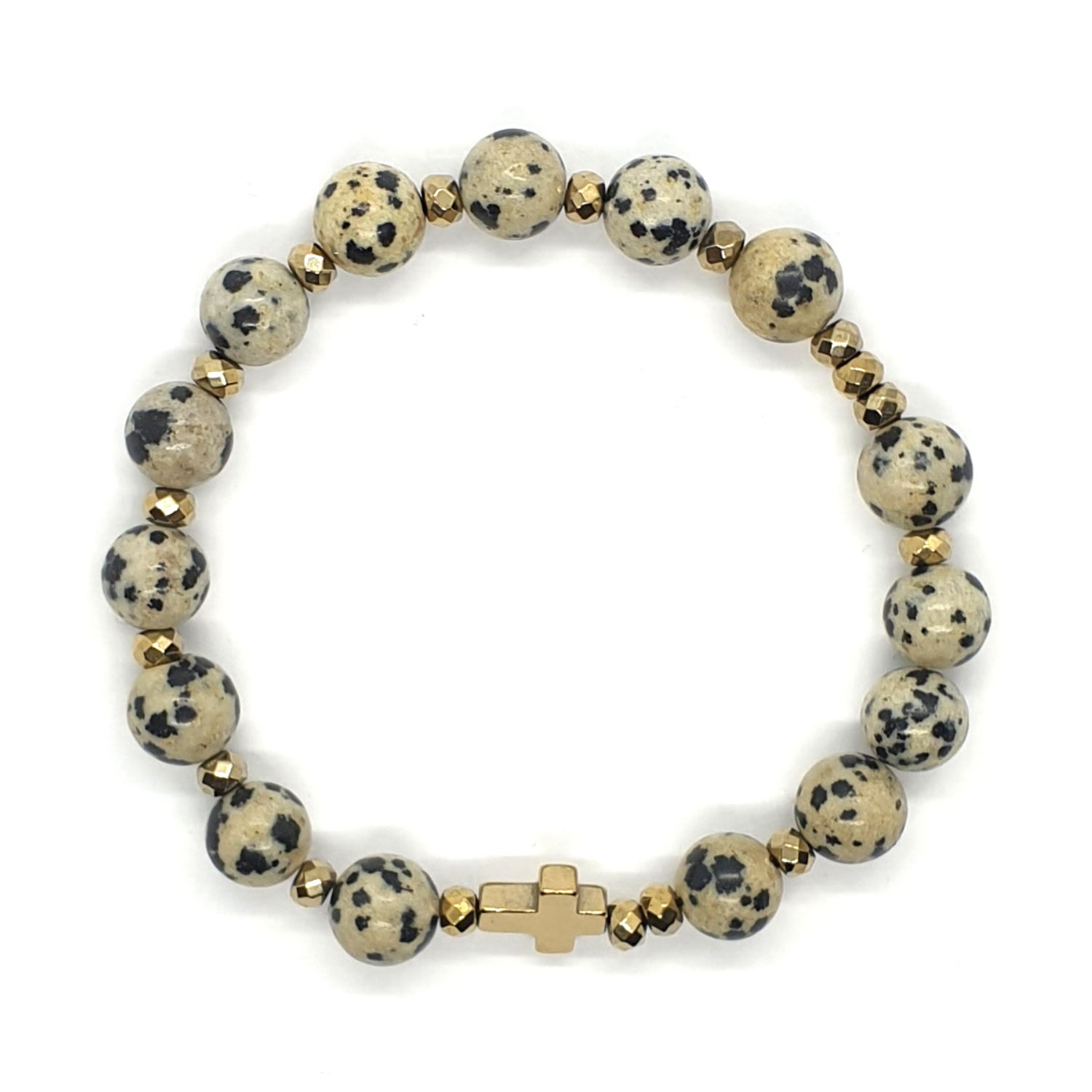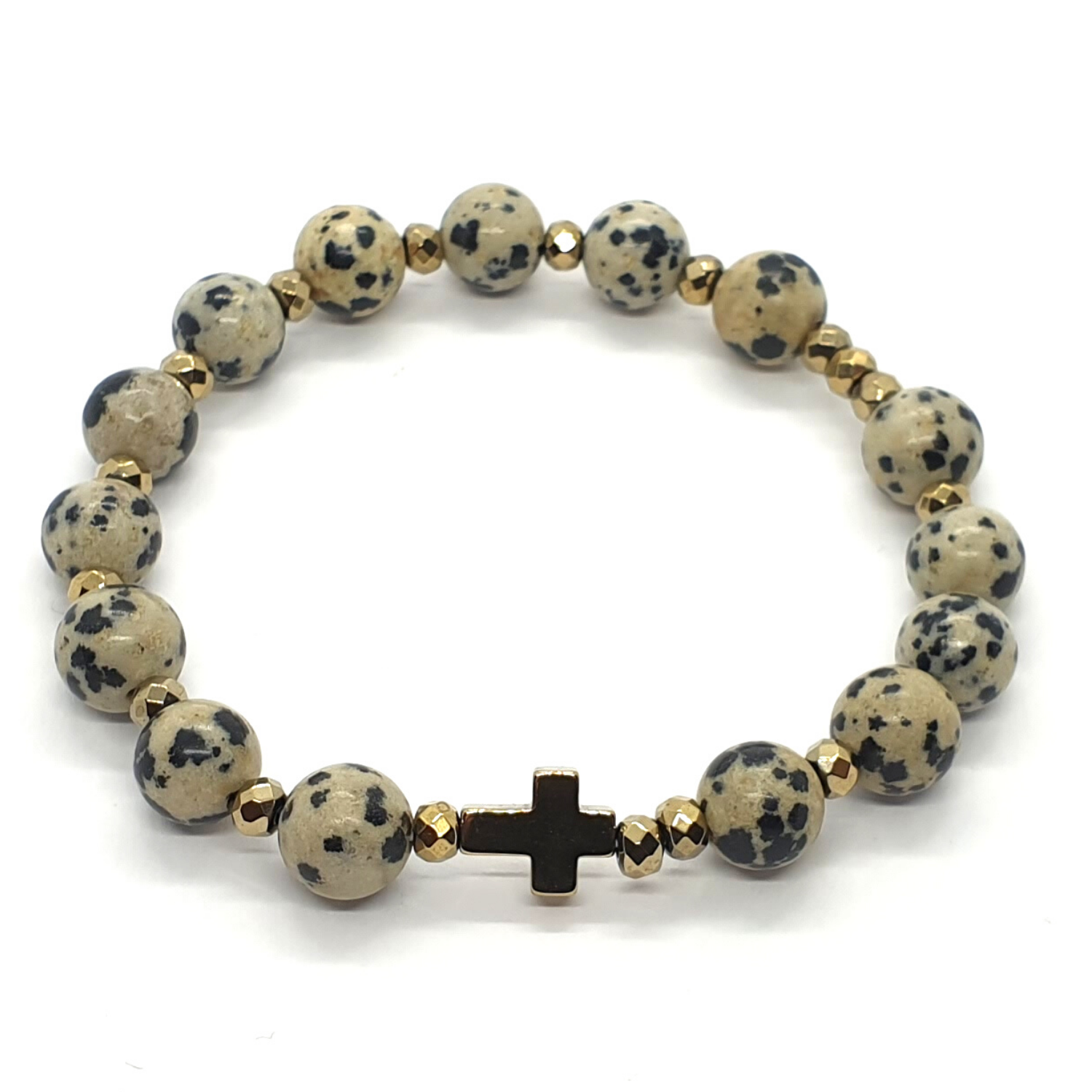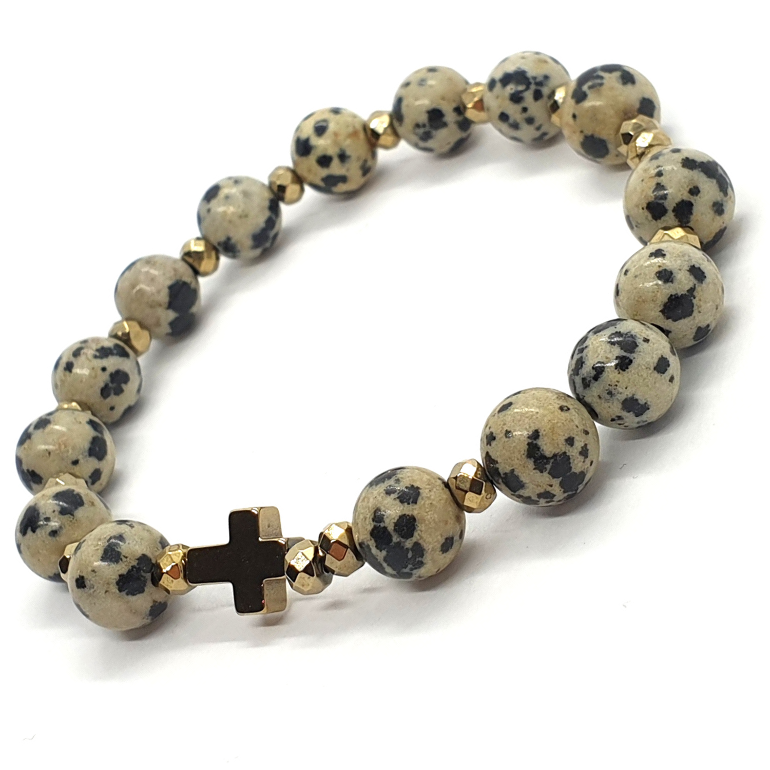 Różaniec na rękę jaspis dalmatyński - bransoletka damska
