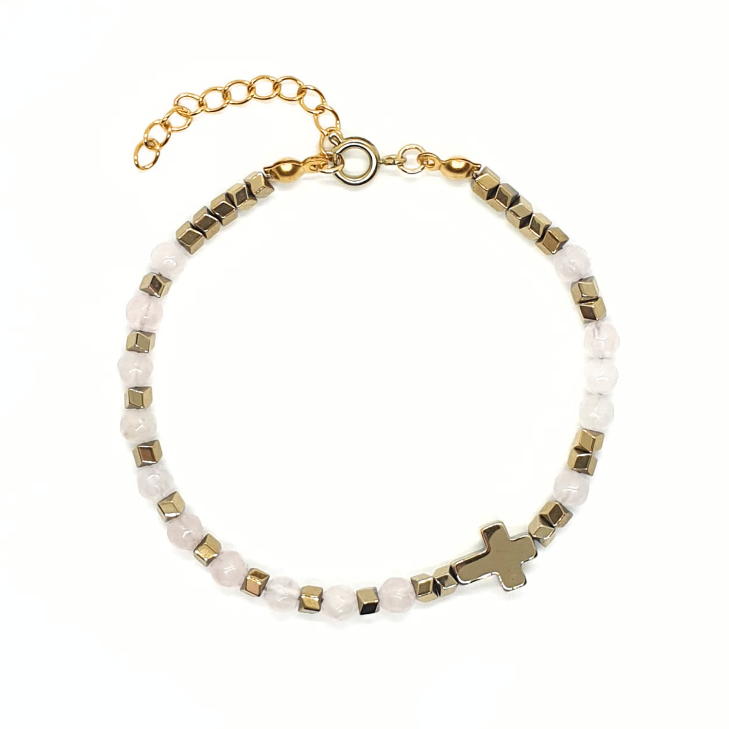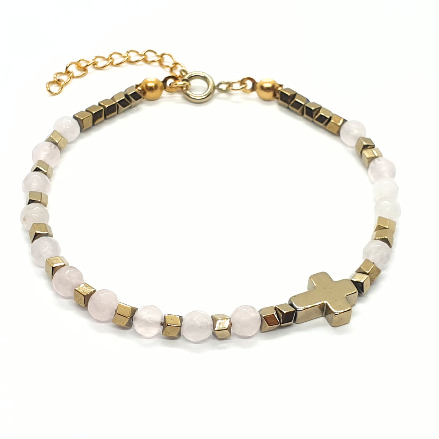 - hematyt platerowany na złoty: krzyżyk 10x8mm i oponki 3mm