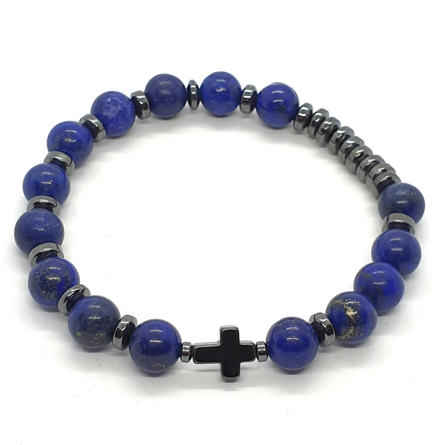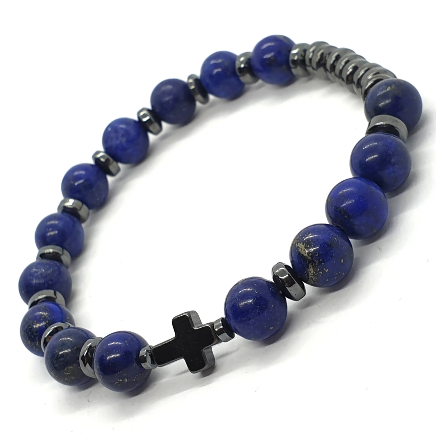 Różaniec męski na rękę "dziesiątka" wykonany z kamieni - lapis lazuli dobarwiany