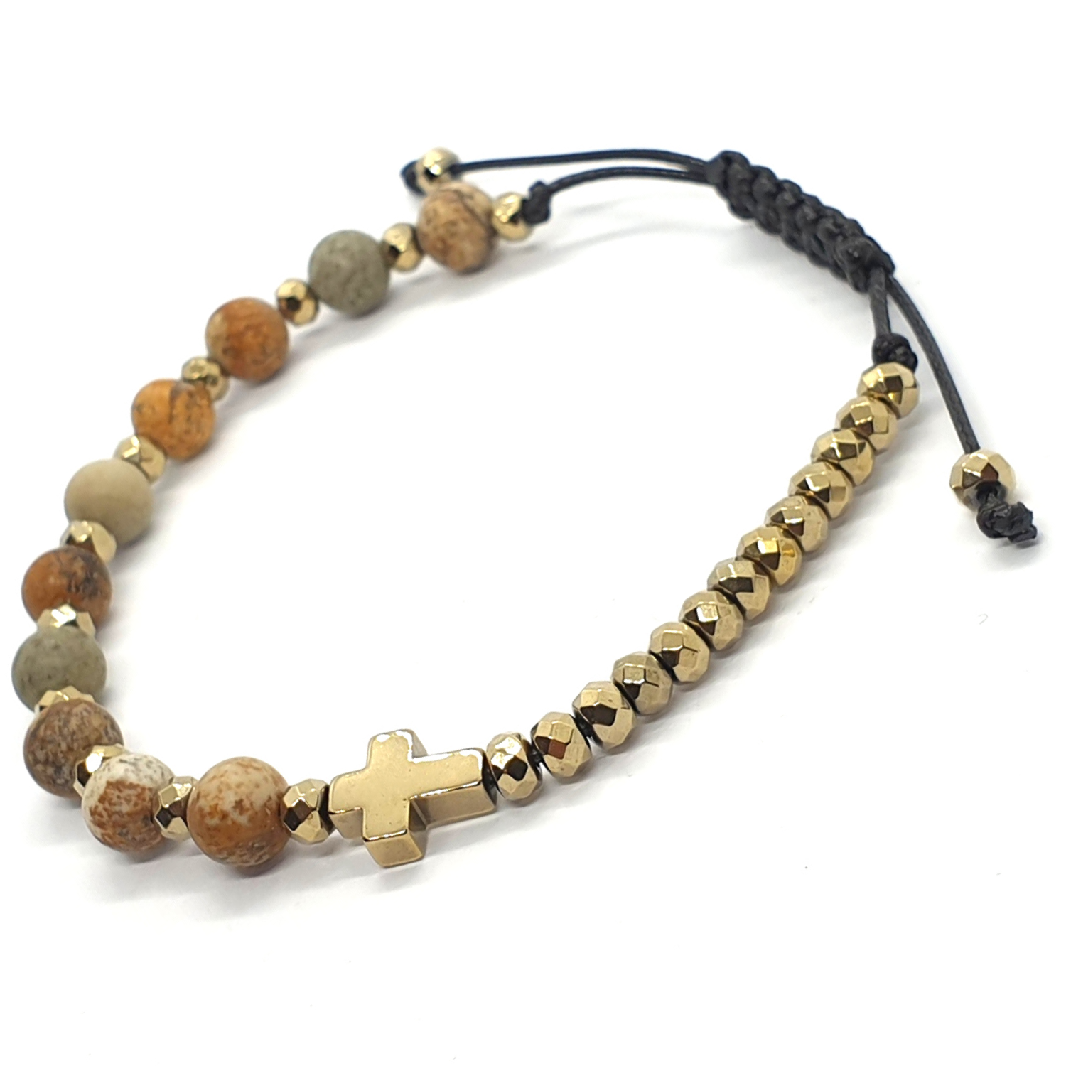 Różaniec na rękę na sznurku jaspis obrazkowy - bransoletka damska