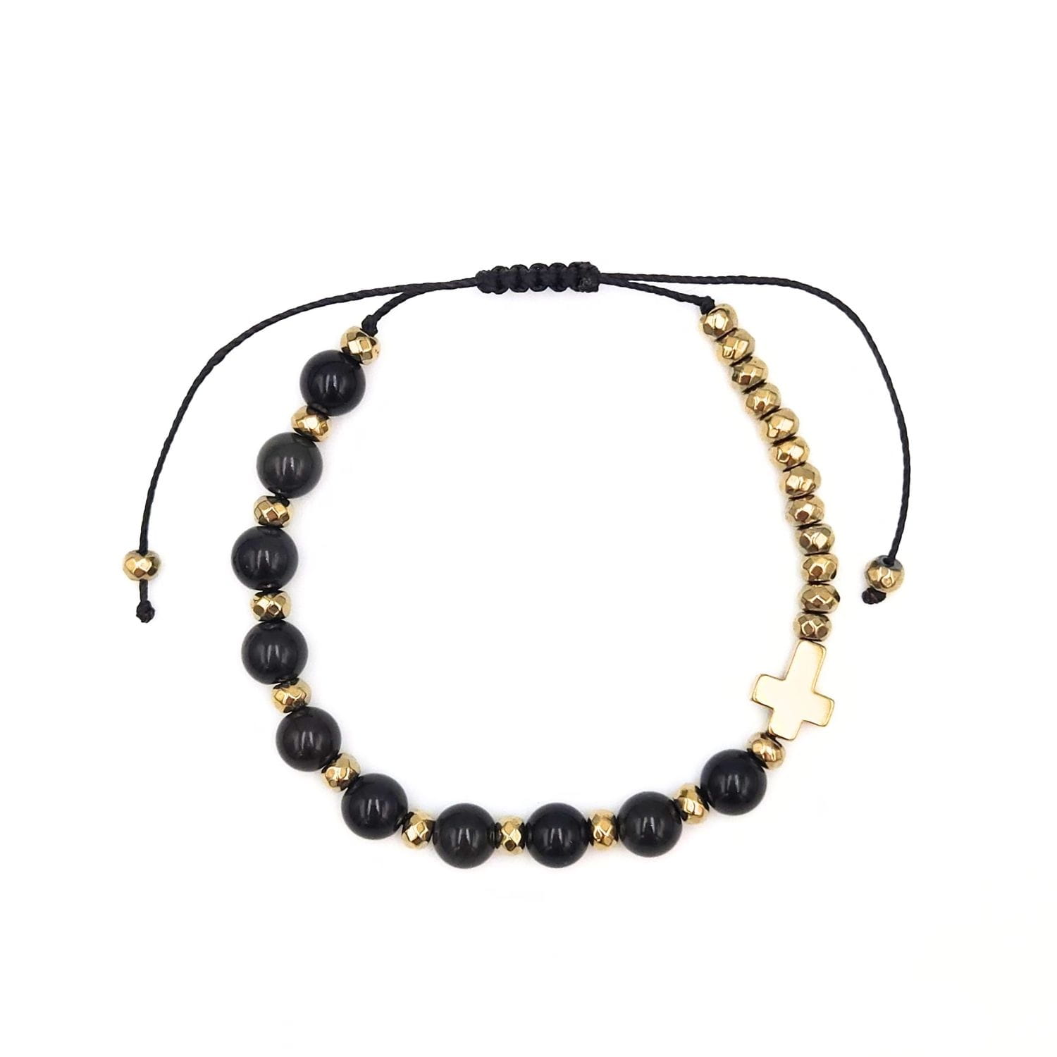 - hematyt platerowany na złoty: krzyżyk 10x8 mm i oponki 4x3 mm