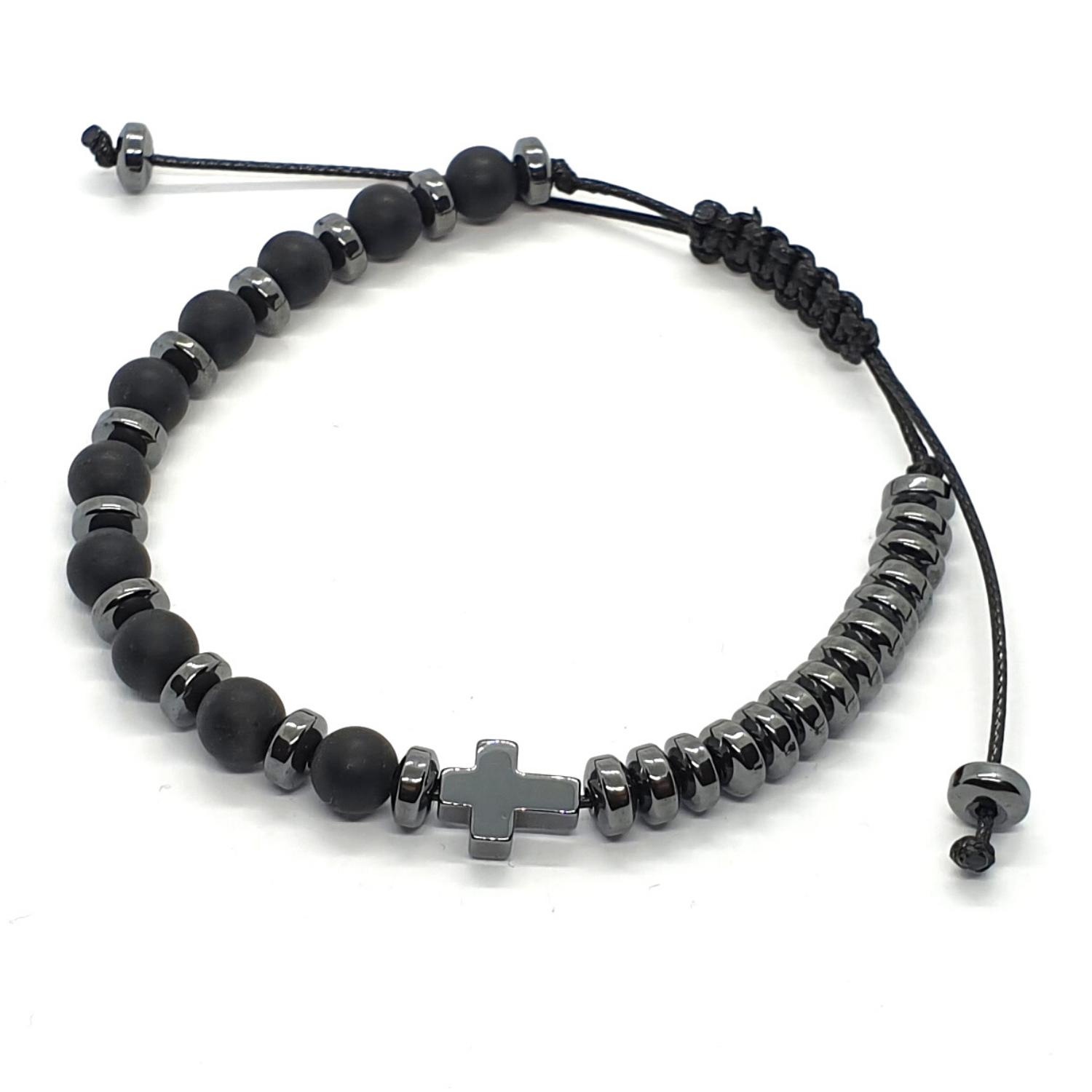Różaniec na rękę "dziesiątka" wykonany z kamieni - onyksu czarnego matowego