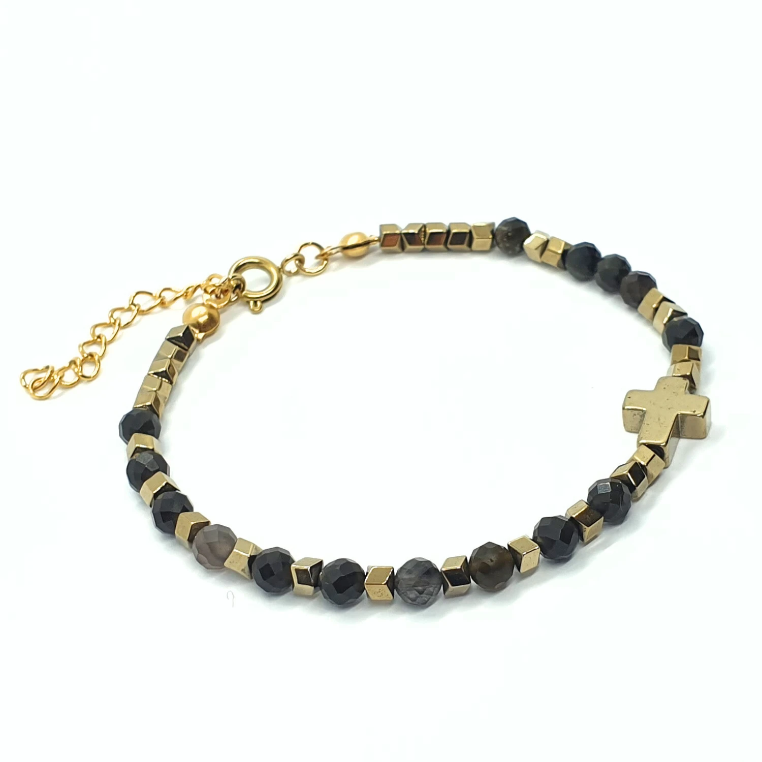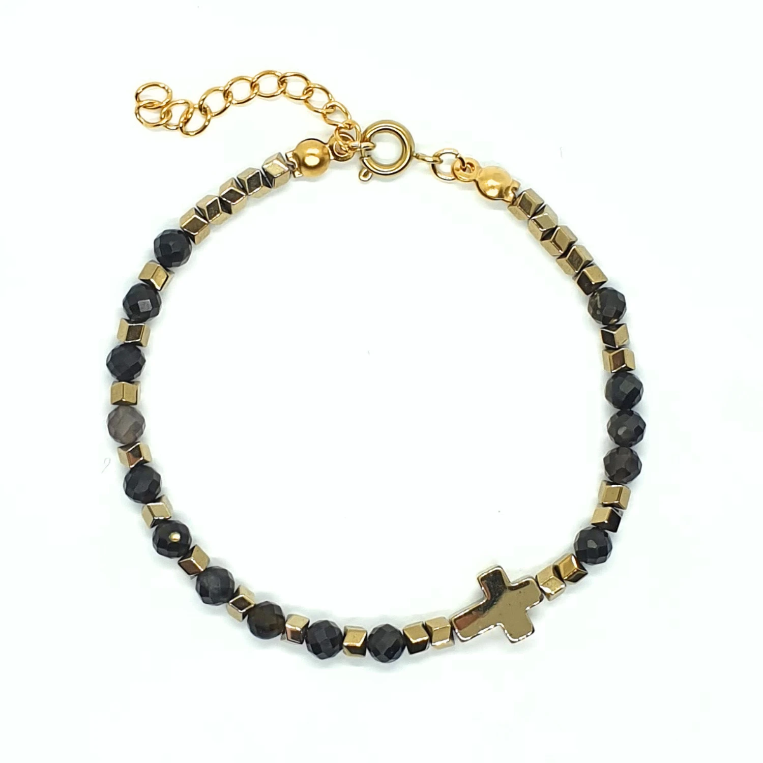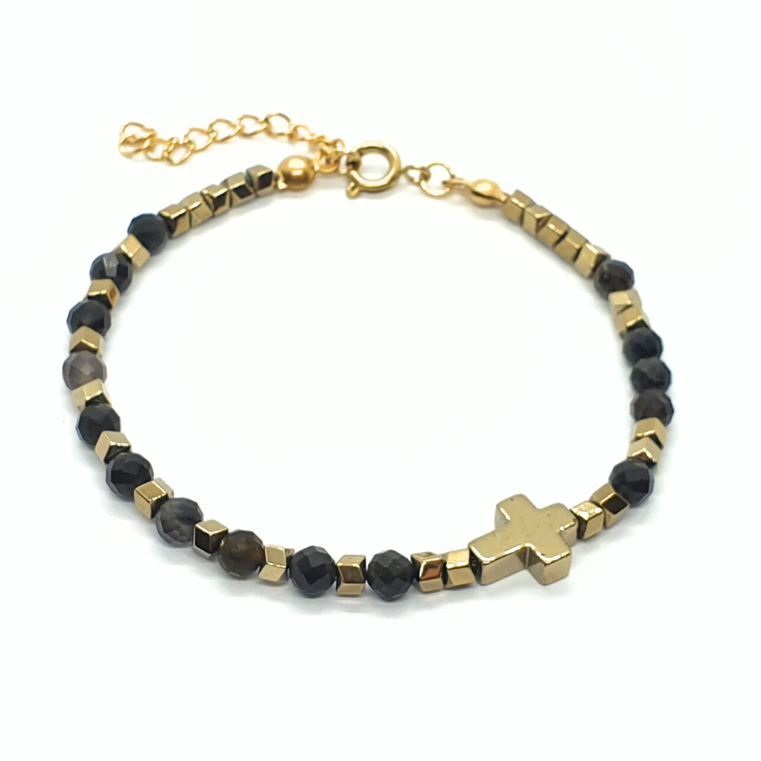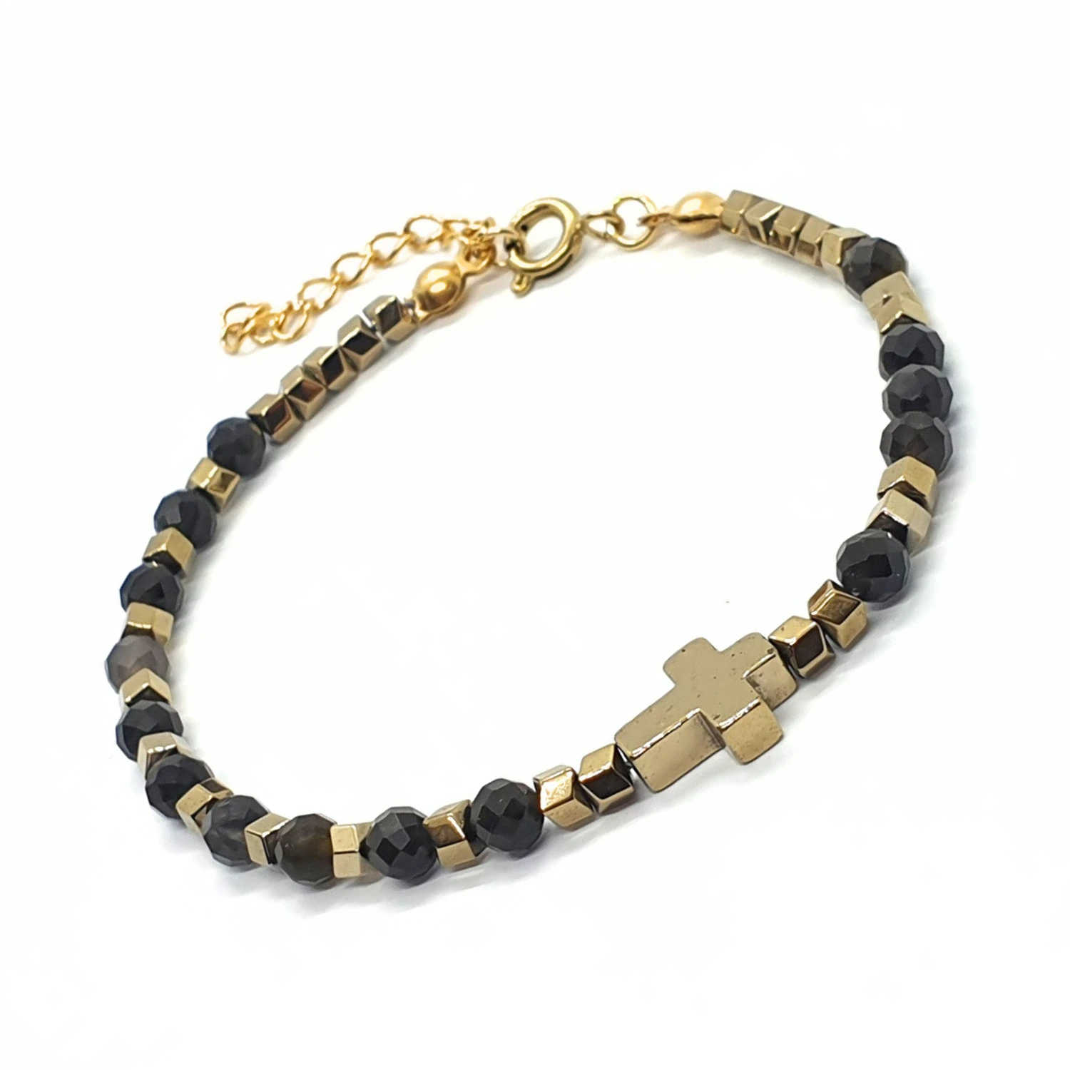 - hematyt platerowany na złoty: krzyżyk 10x8mm i oponki 3mm