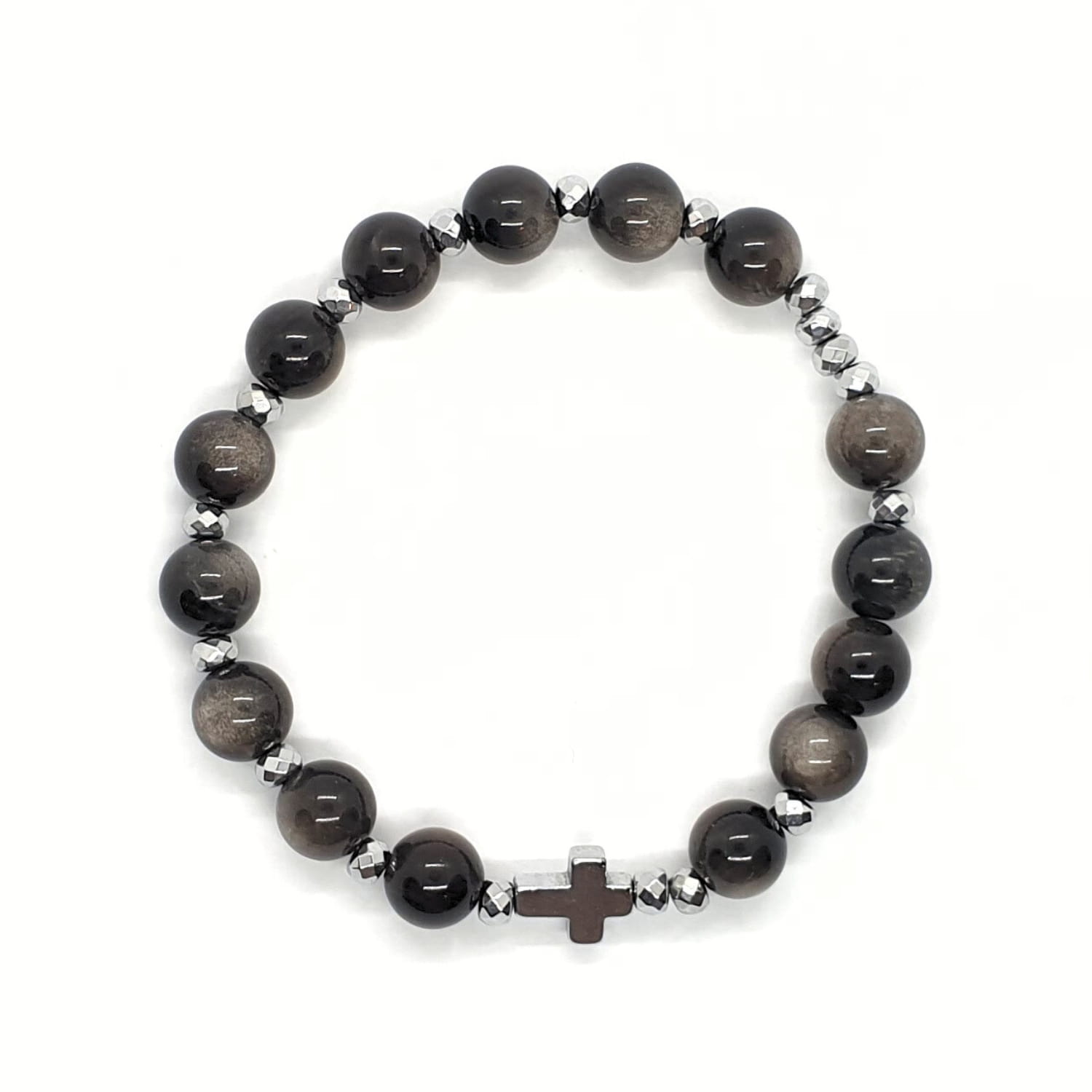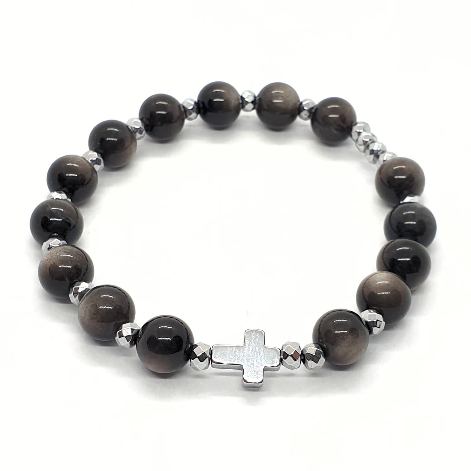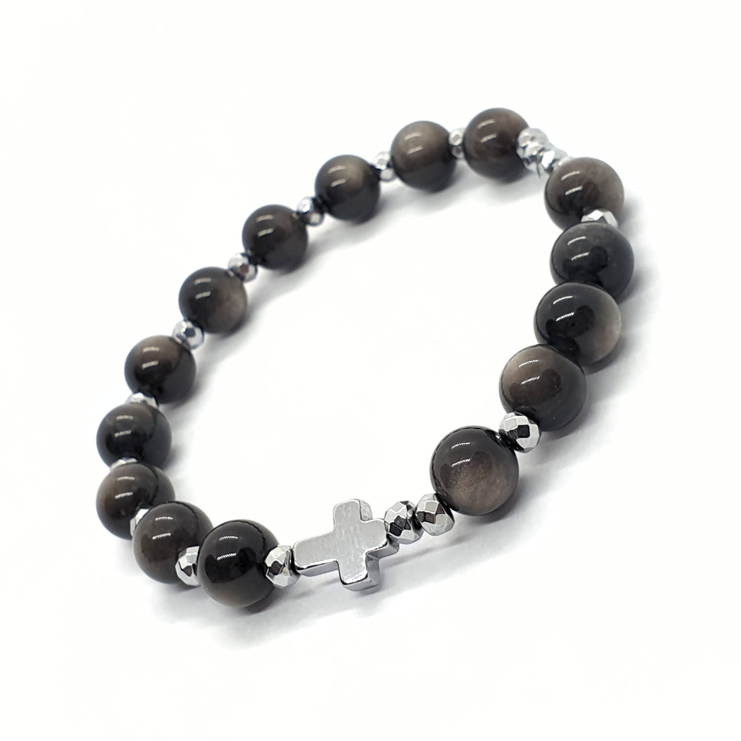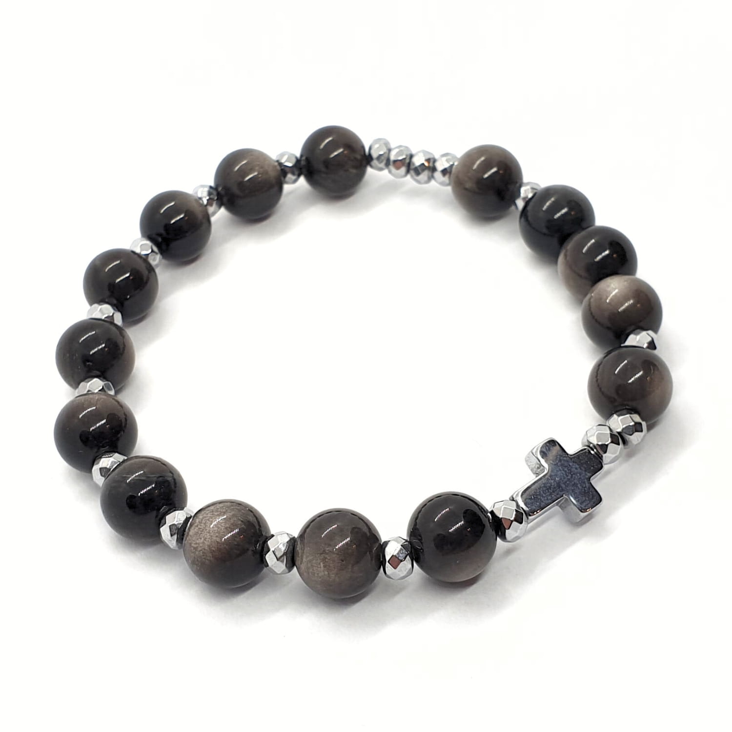 Różaniec na rękę "dziesiątka" wykonany z kamieni - obsydianu