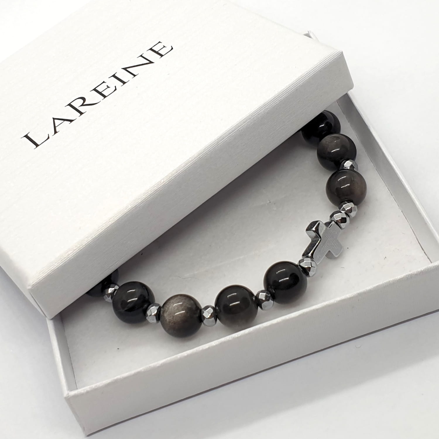 Różaniec na rękę obsydian - bransoletka damska