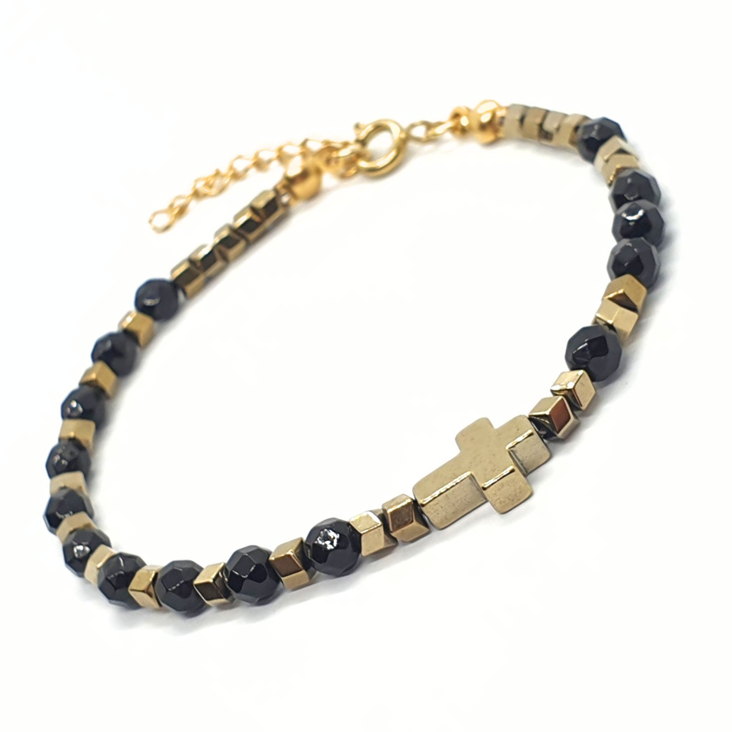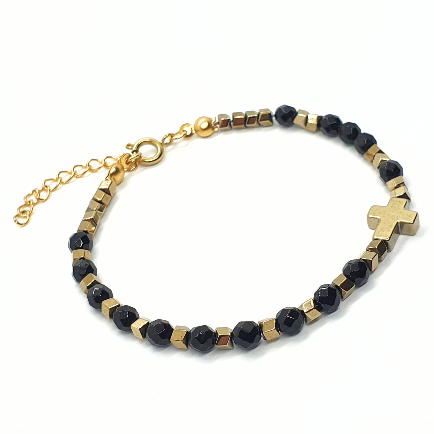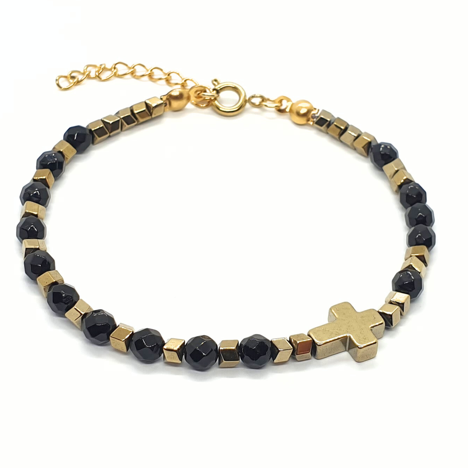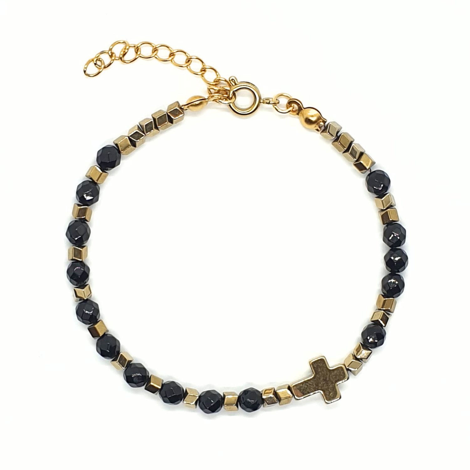 - hematyt platerowany na złoty: krzyżyk 10x8mm i oponki 3mm