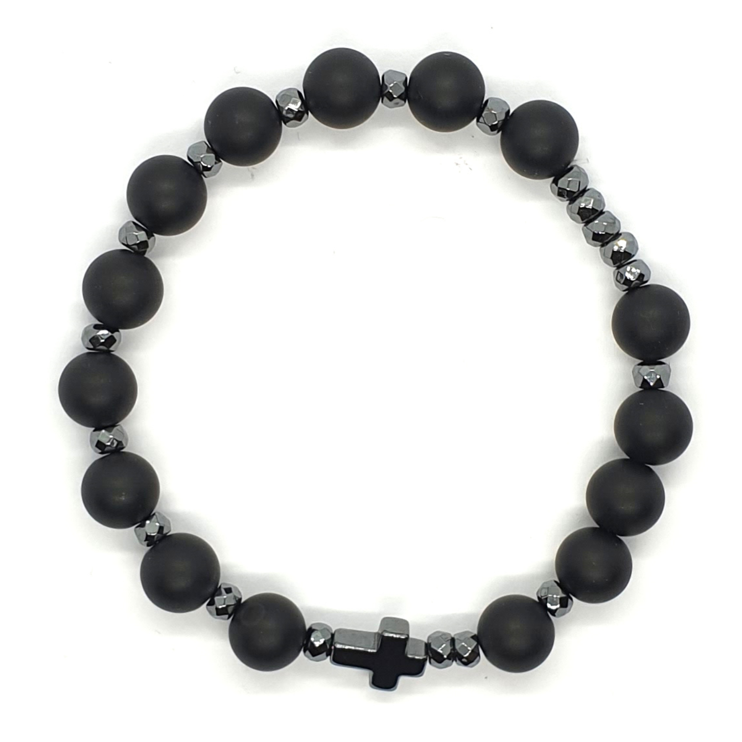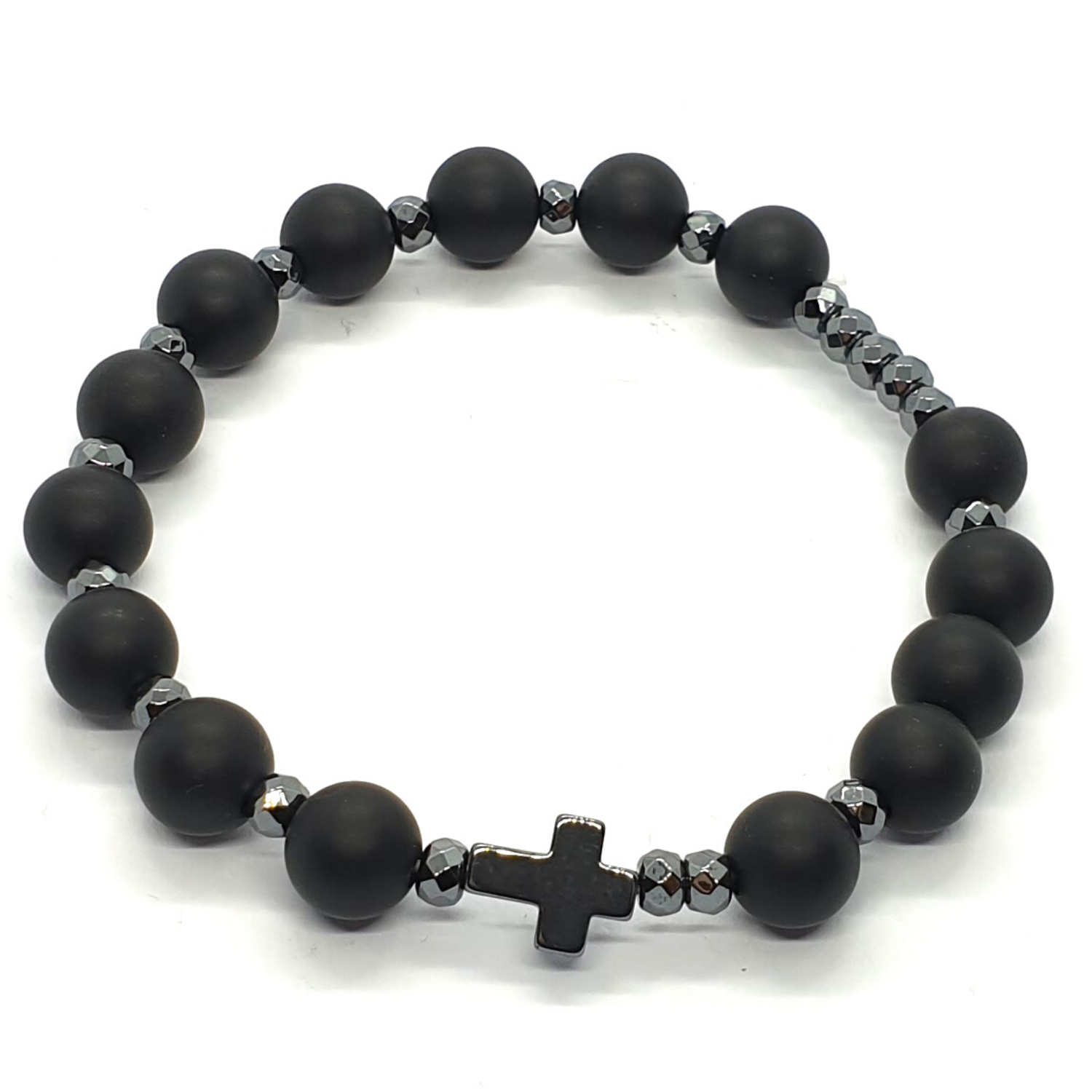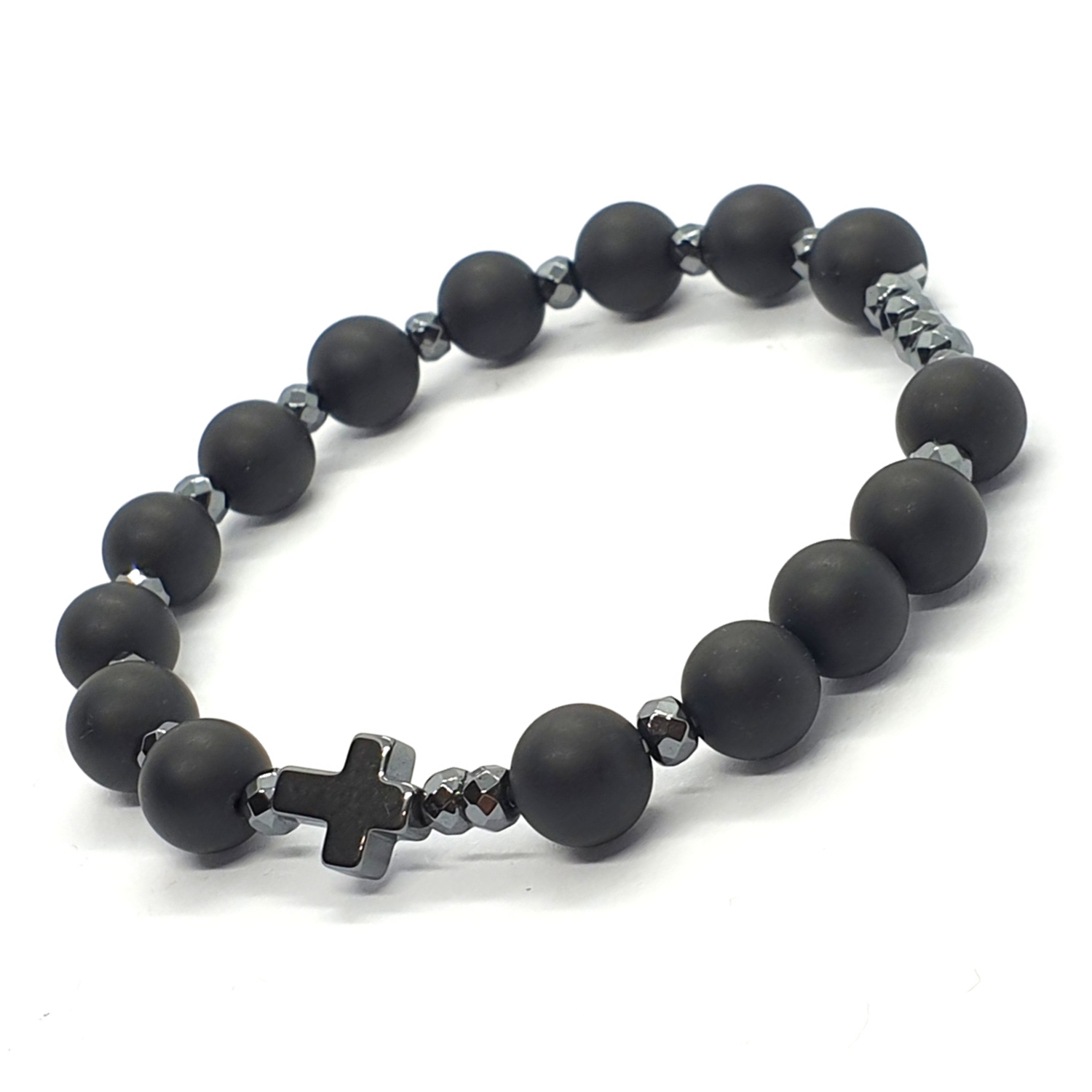 Różaniec na rękę "dziesiątka" wykonany z kamieni - onyksu czarnego matowego
