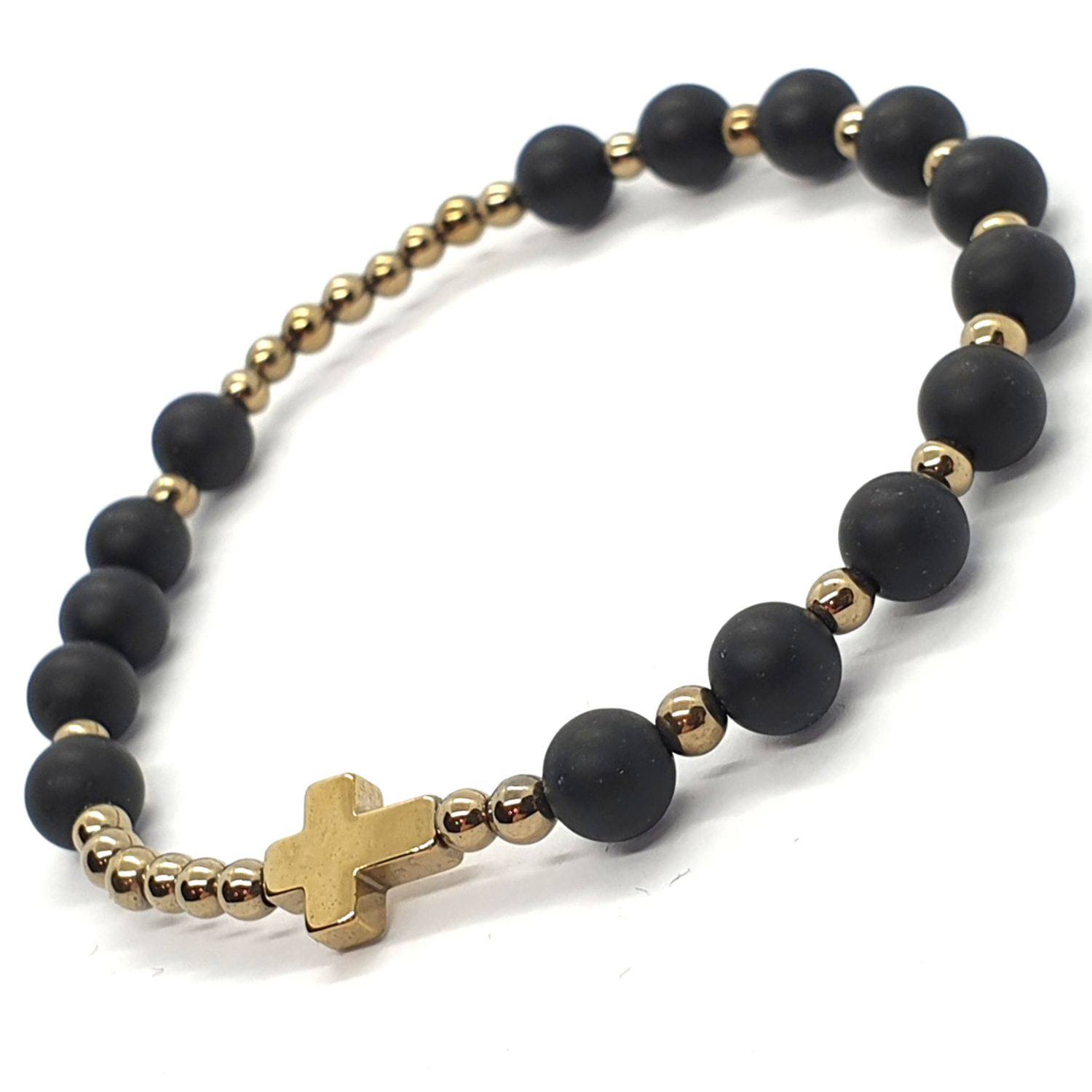 Różaniec na rękę "dziesiątka" wykonany z kamieni - onyksu czarnego matowego