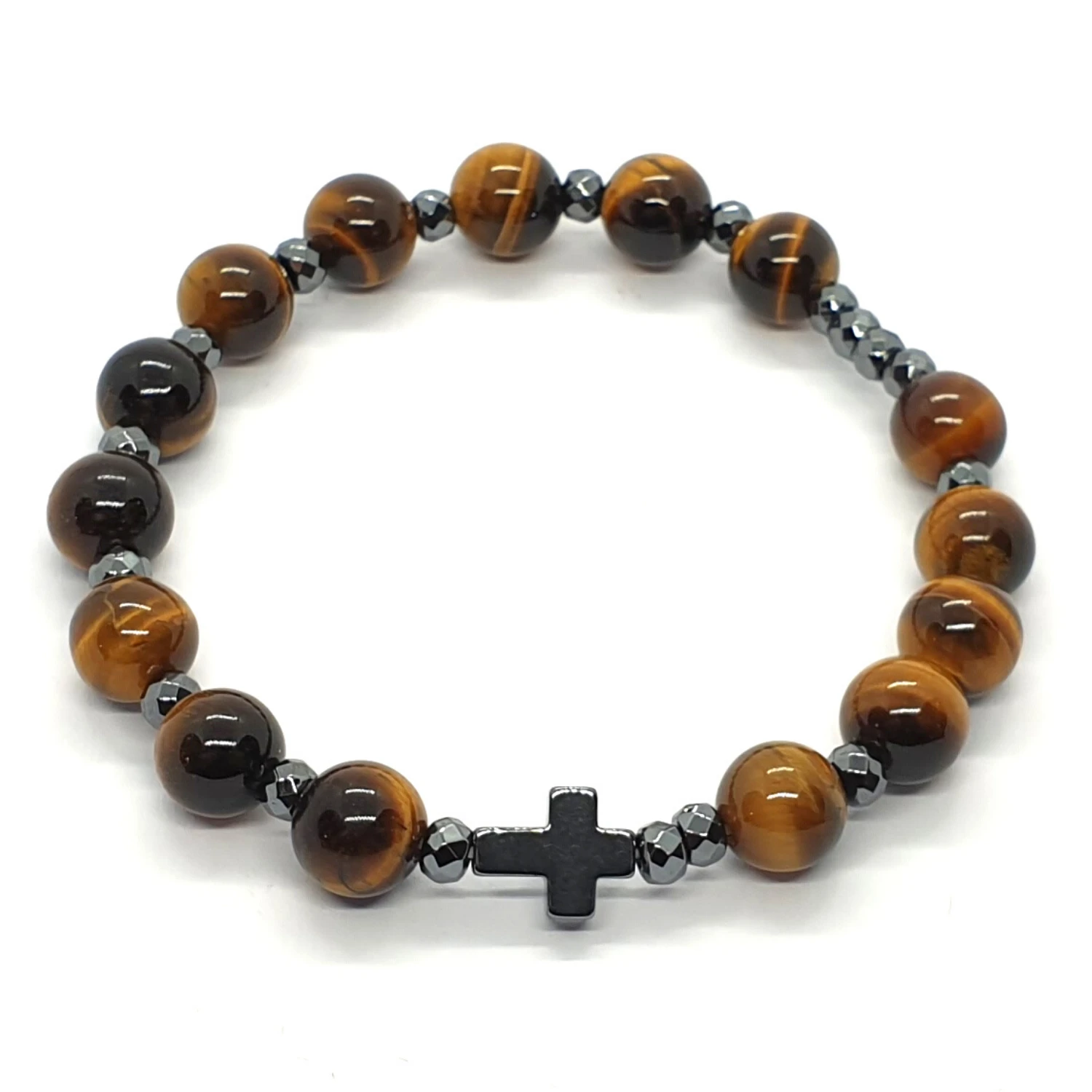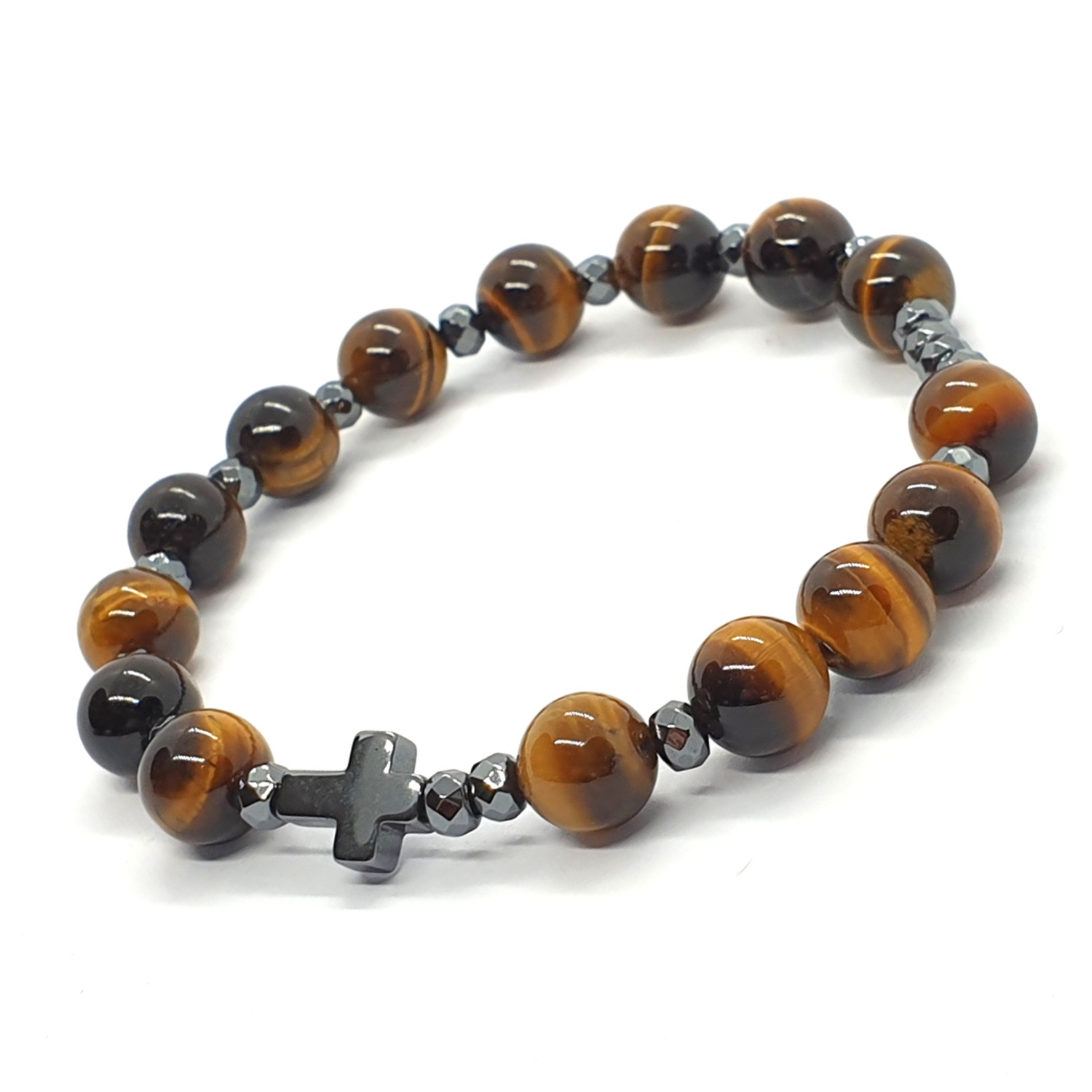 Różaniec na rękę "dziesiątka" wykonany z kamieni naturalnych - tygrysiego oka