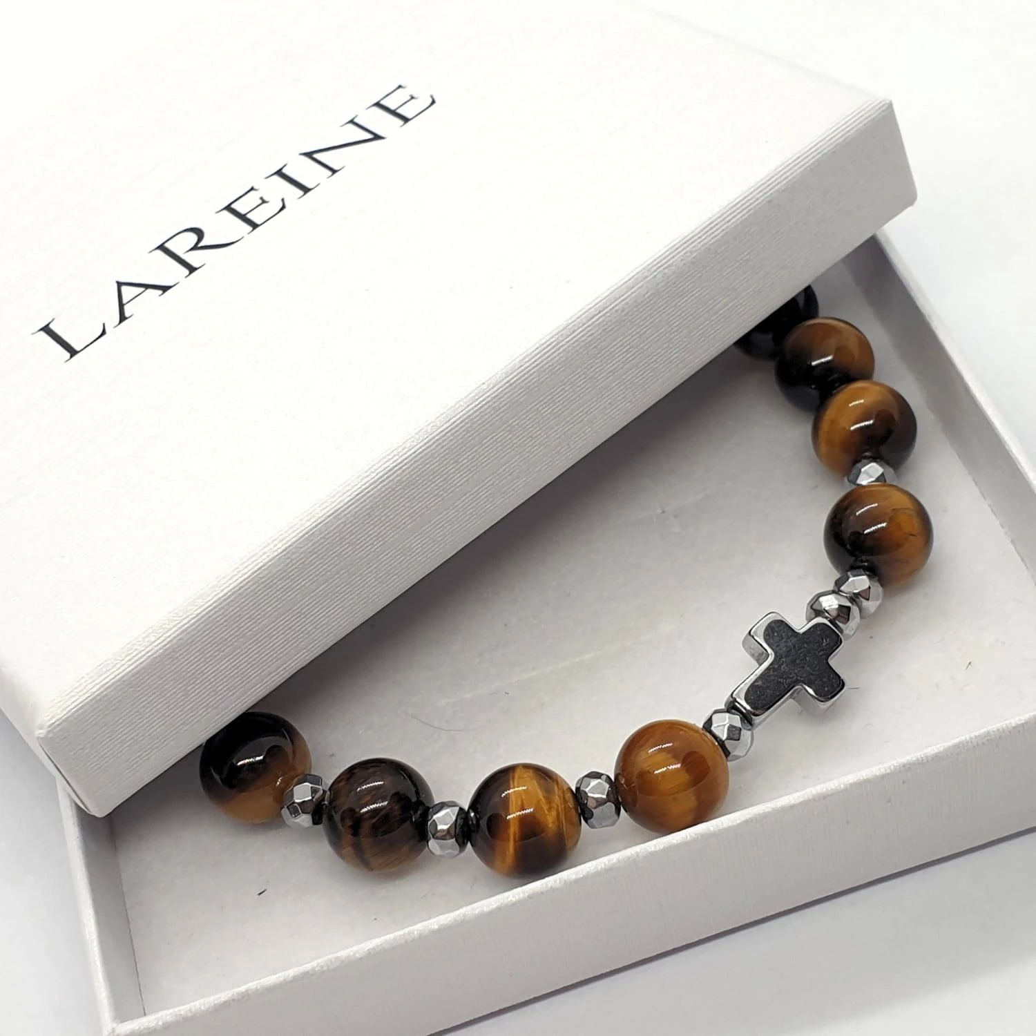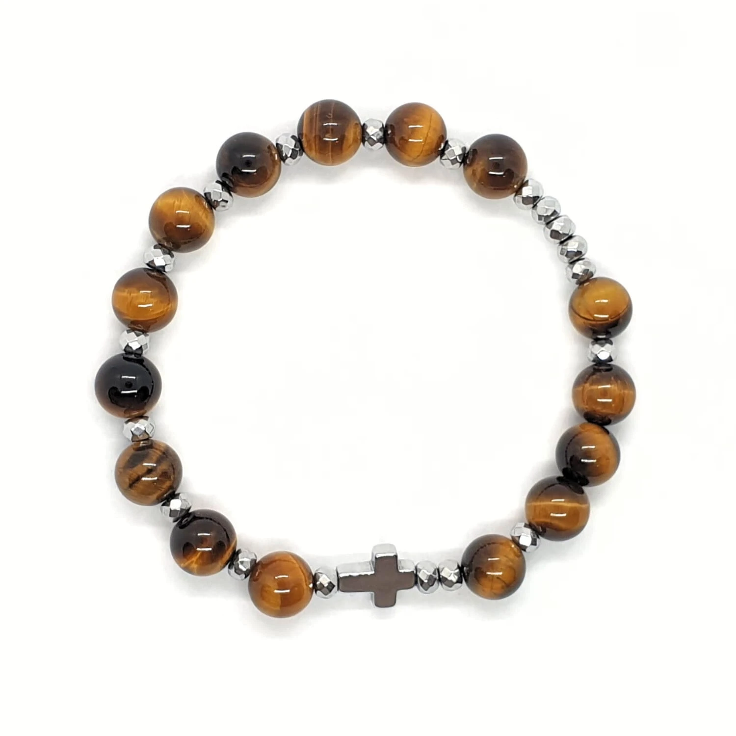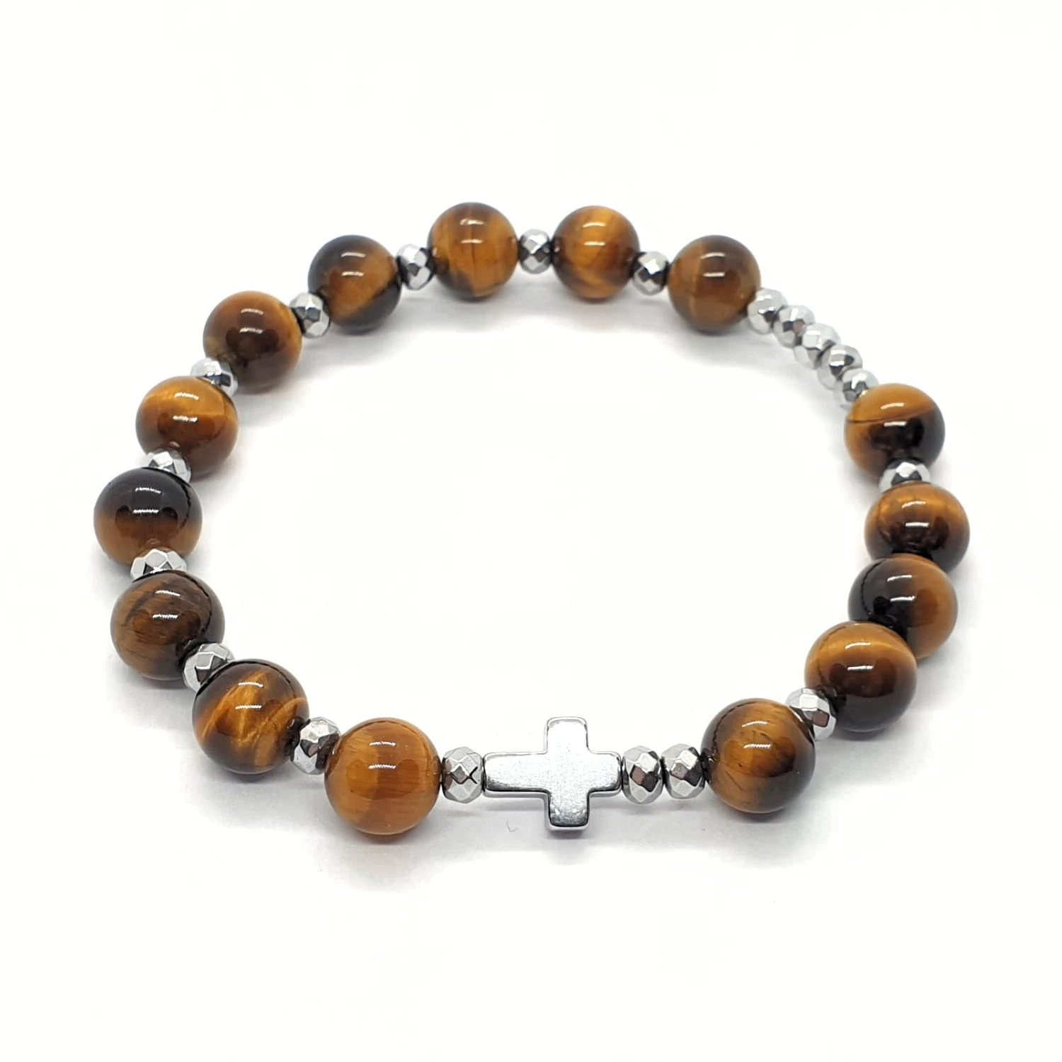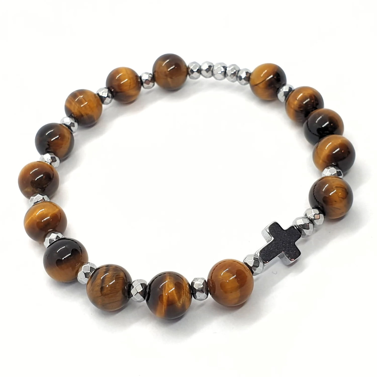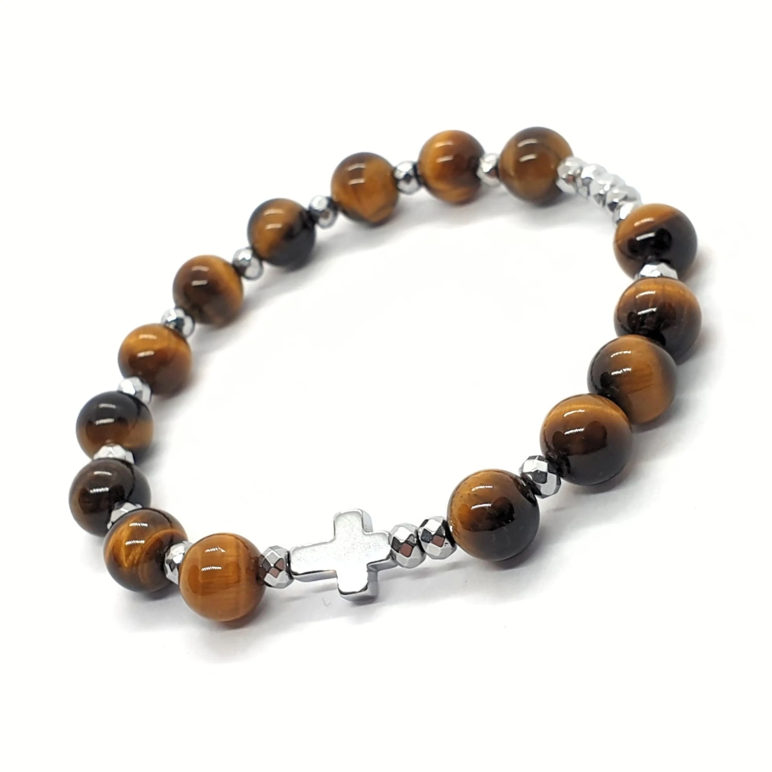Różaniec na rękę "dziesiątka" wykonany z kamieni naturalnych - tygrysiego oka