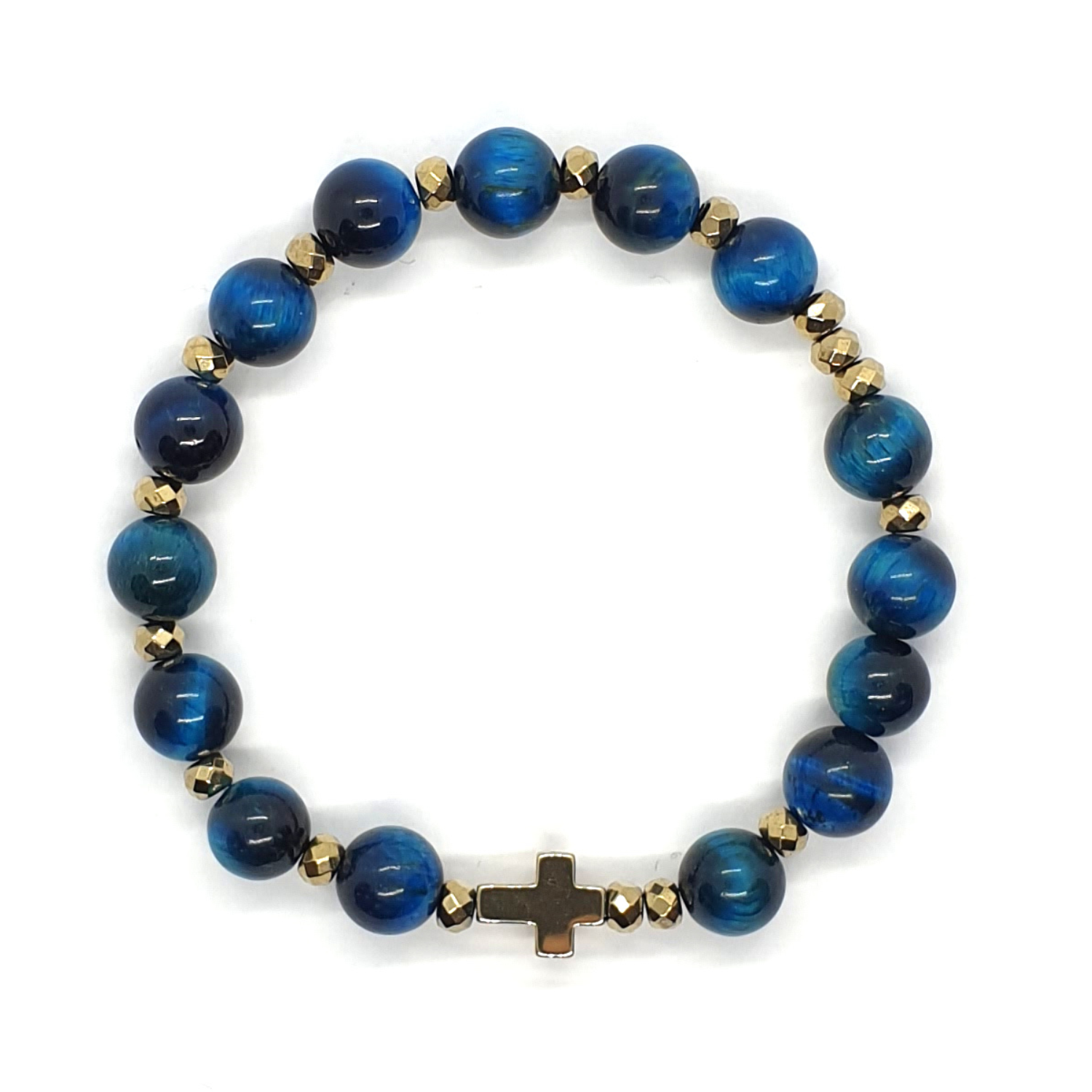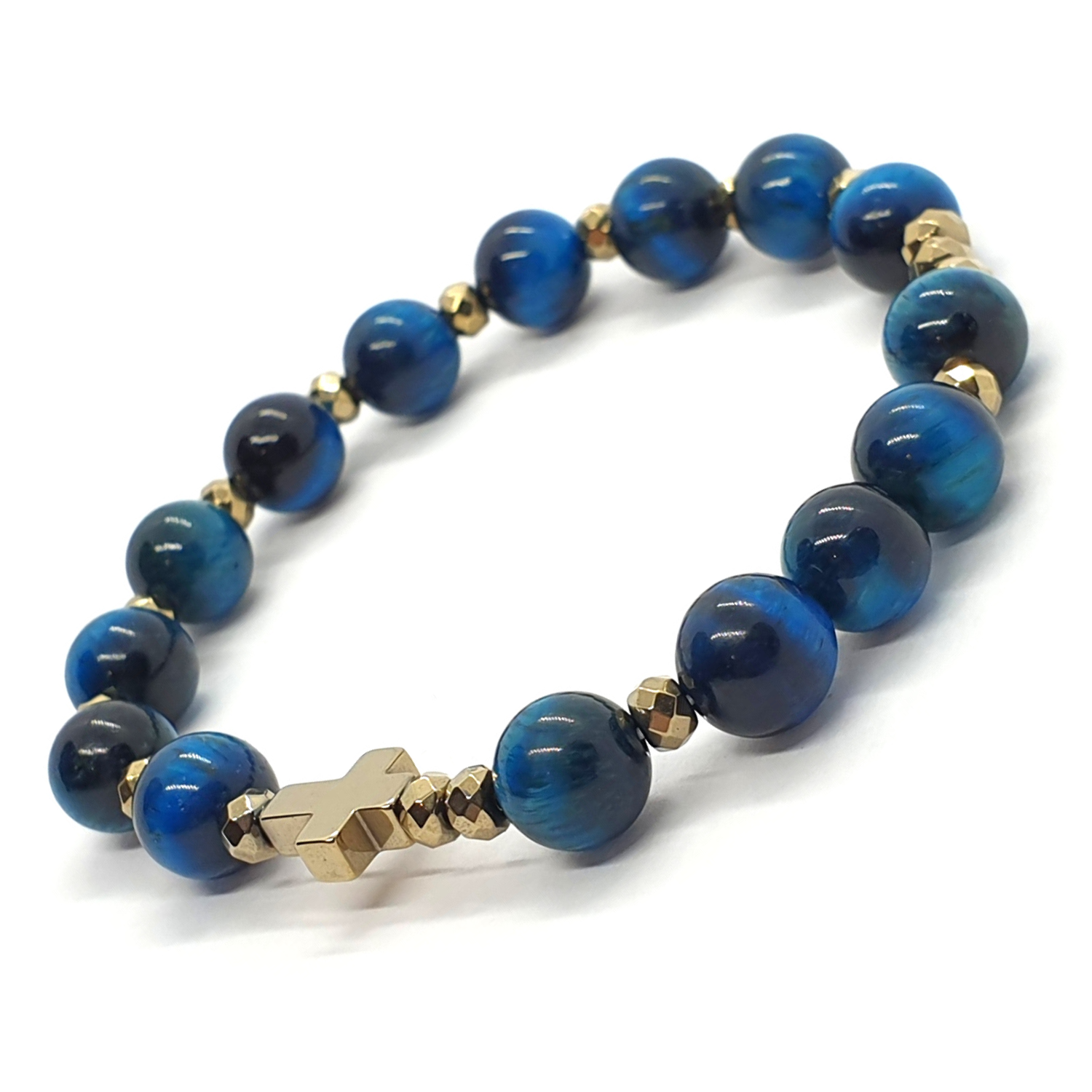 Różaniec na rękę "dziesiątka" wykonany z kamieni - tygrysiego oka niebieskiego